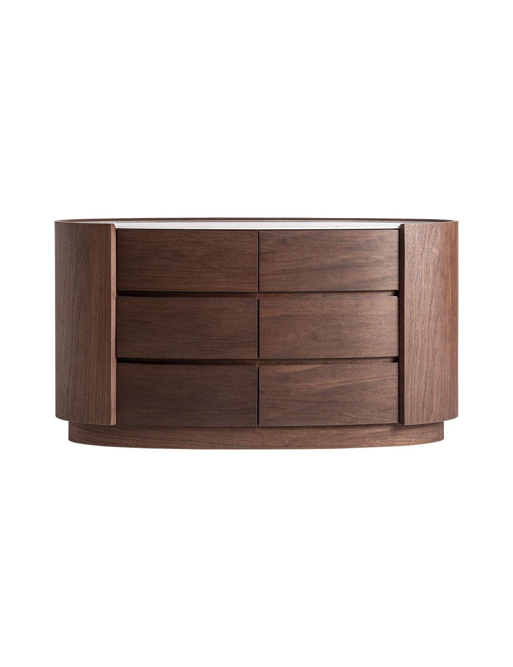 Cómoda Stuetta de estilo contemporáneo fabricado en madera contrachapada en color marrón combinado con chapa de roble en color marrón y piedra sinterizada en color blanco. | Cómoda Isola de estilo contemporáneo fabricado en madera contrachapada en color negro combinado con chapa de roble en color negra y piedra sinterizada en color blanco. | Cómoda Soaza de estilo contemporáneo fabricado en madera contrachapada en color marrón combinado con chapa de eucalipto en color marrón claro y piedra sinterizada en color blanco. |