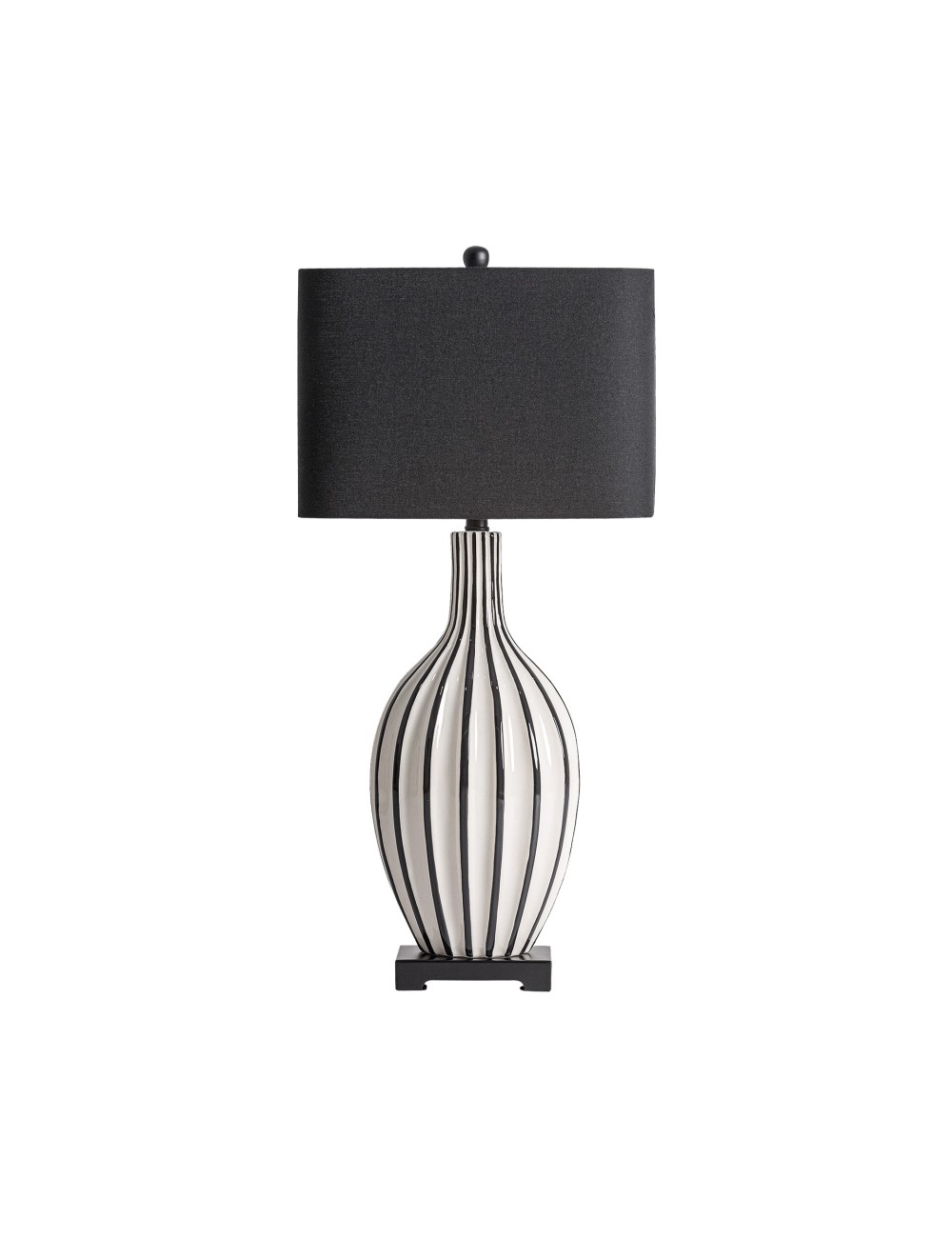 Lámpara de sobremesa Zalsa de estilo clásico fabricado en cerámica en color blanco combinado con hierro en color negro y lino en color negro.