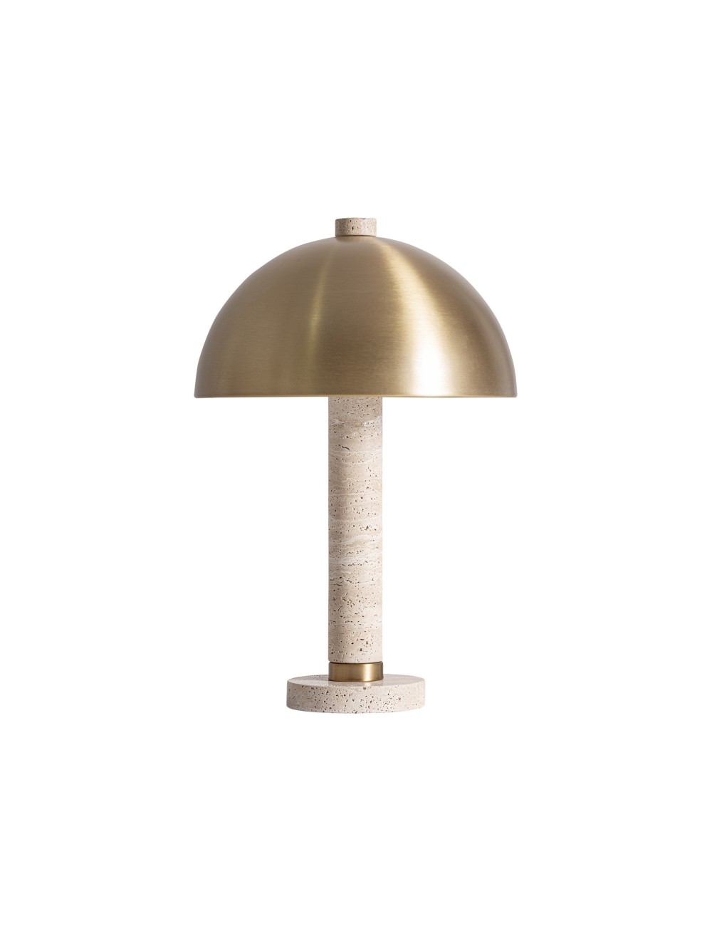 Lámpara de sobremesa Clajhe de estilo art deco fabricado en travertino en color marfil combinado con hierro en color oro. Producto desmontable.