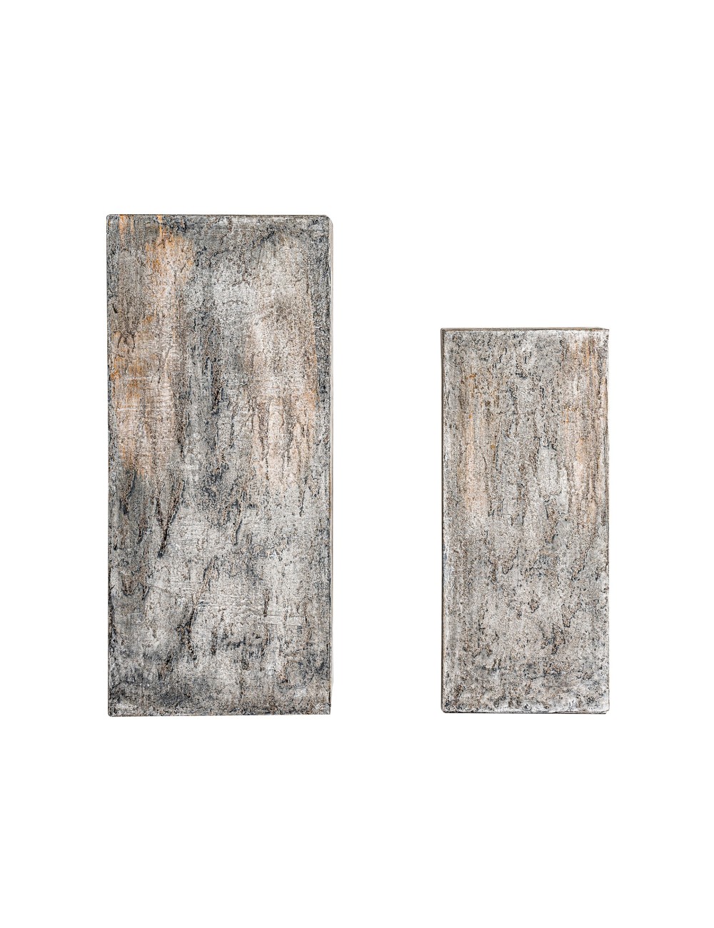 Peana j 2 Arvit de estilo industrial fabricado en terracota en color tonos neutros con acabado patina. Producto apilable. | Mesa auxiliar breive de estilo rústico fabricado en madera de pino reciclado en color marrón con acabado envejecido. | Mesa auxiliar Ruskeala de estilo contemporáneo fabricado en mármol en color tonos oscuros en color dorado. | Peana j 2 Elio de estilo industrial fabricado en terracota en color negro. |