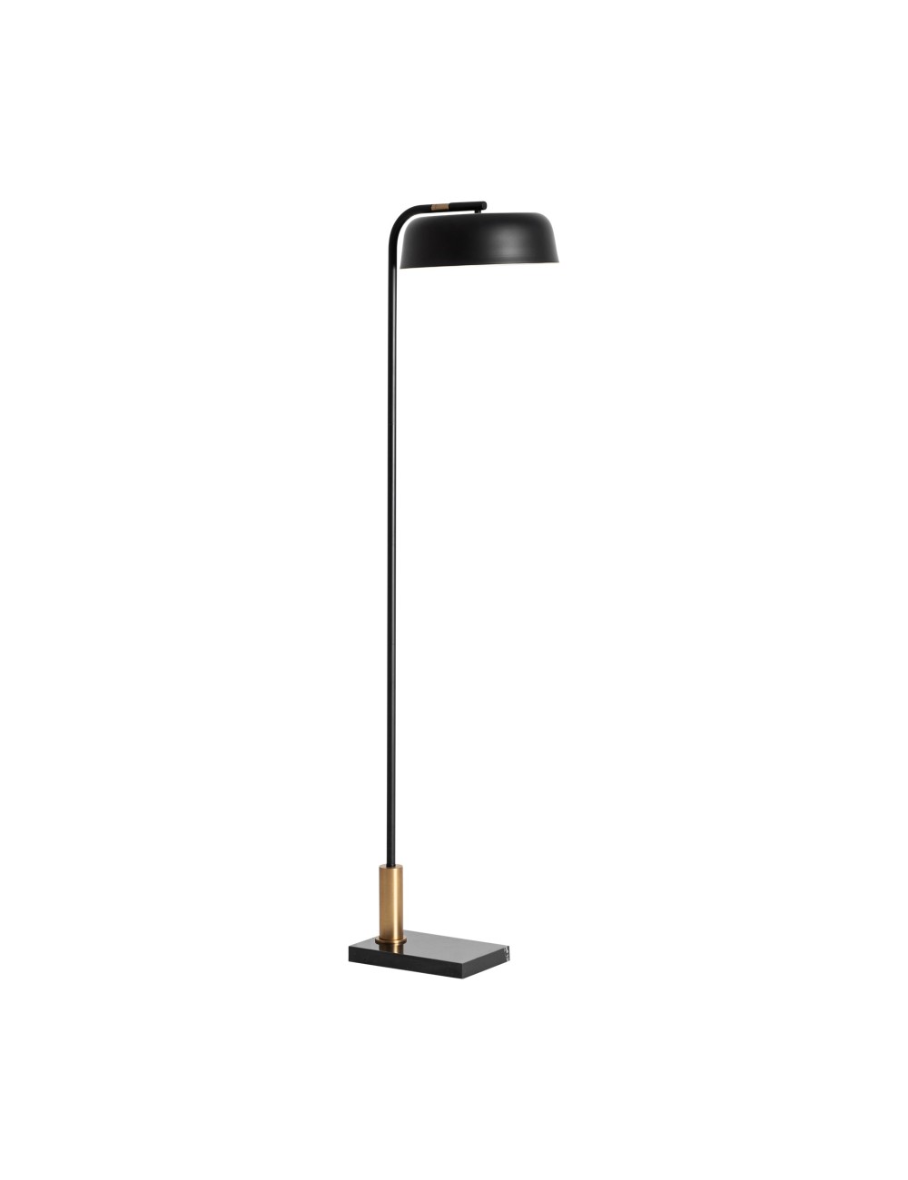Lámpara de pie cint de estilo contemporáneo fabricado en mármol en color negro combinado con acero en color oro en color negro.