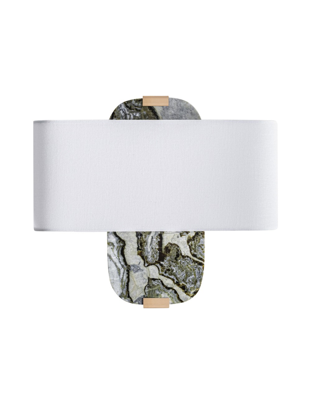 Aplique Glaese de estilo art deco fabricado en mármol en color tonos neutros combinado con acero en color bronce y poliéster en color blanco.