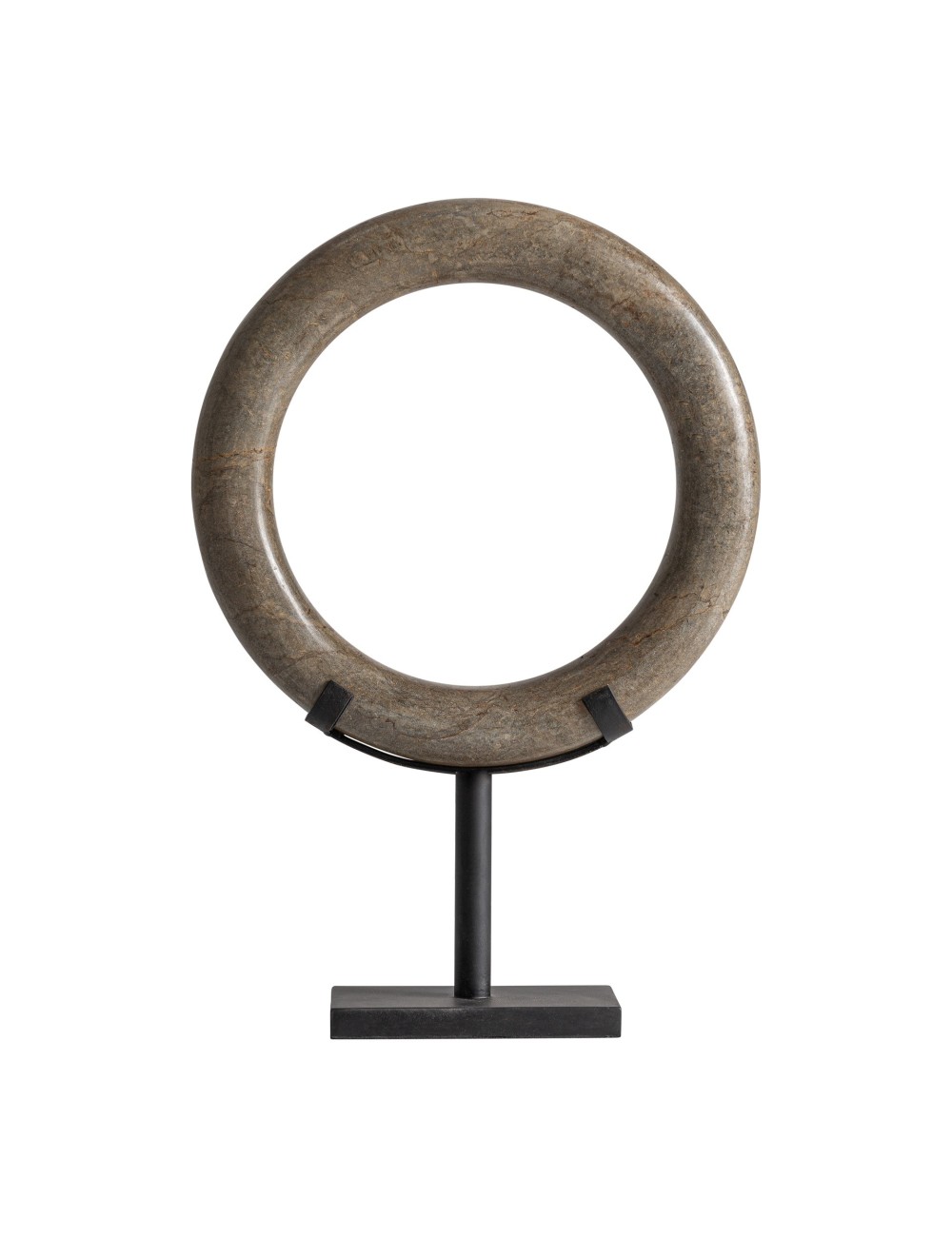 Figura decorativa de estilo nórdico fabricado en mármol en color marrón combinado con hierro en color negro.