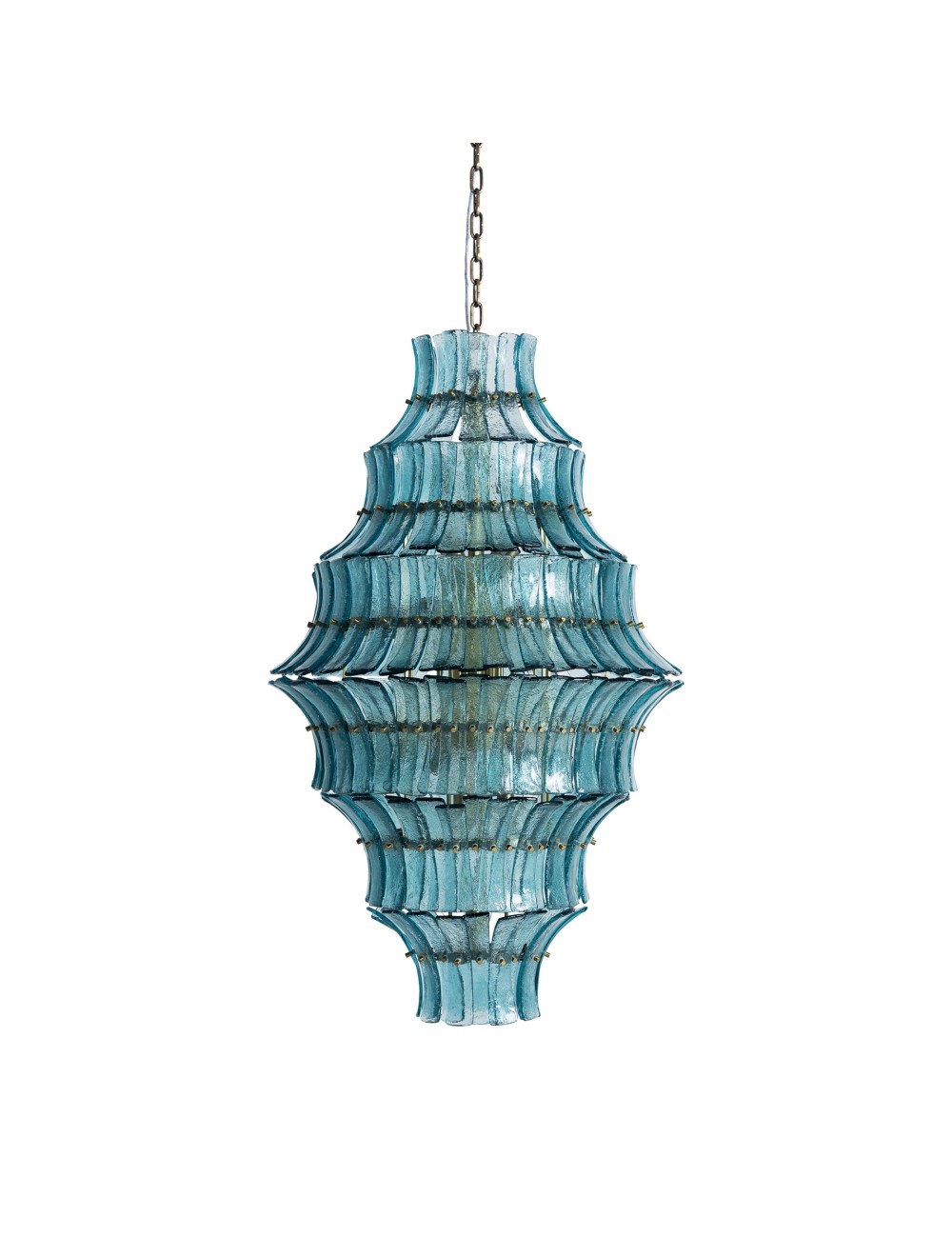 Lámpara de colgar Civenna de estilo vintage fabricado en cristal en color azul combinado con hierro en color bronce. Producto desmontable.