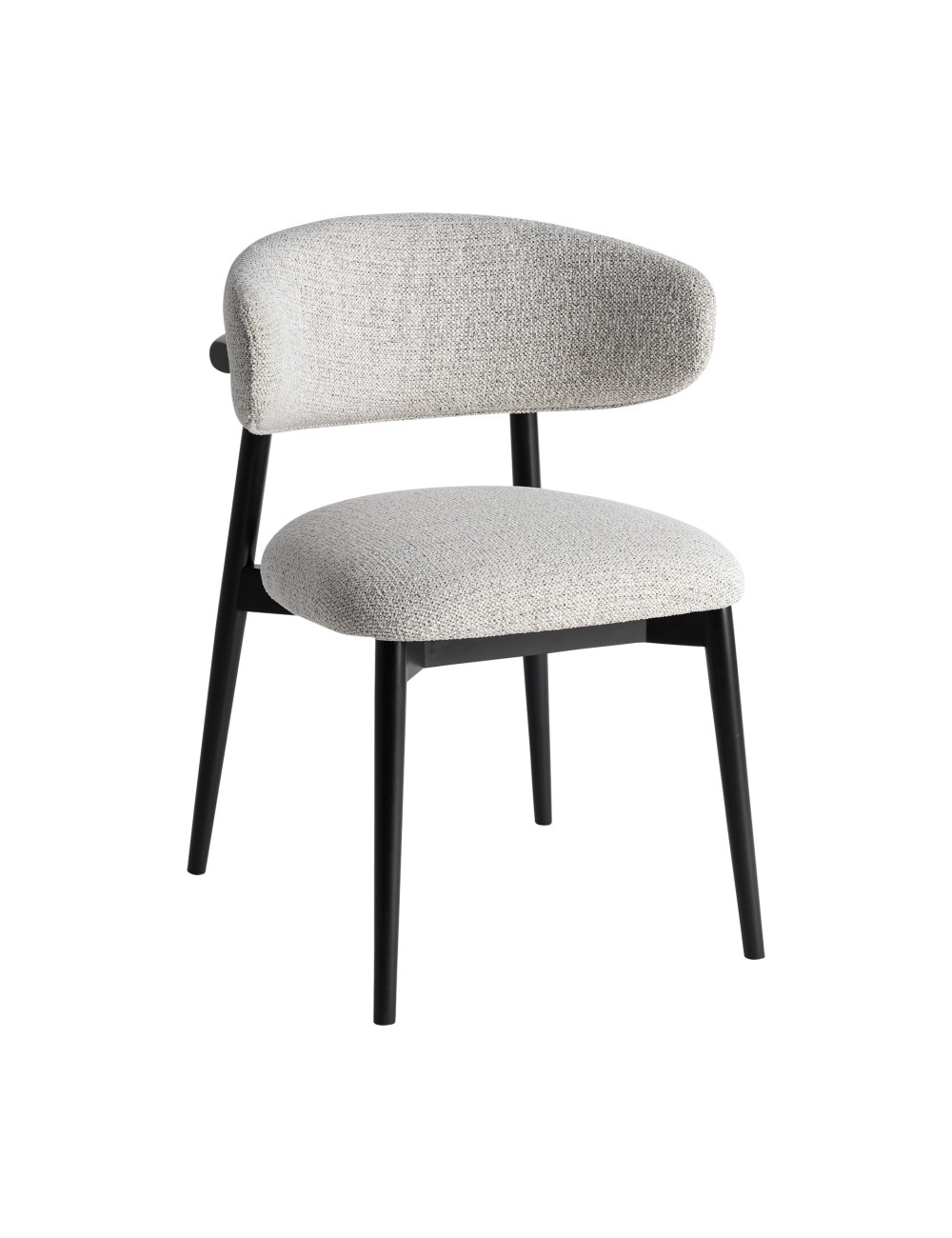 Silla Zell de estilo contemporáneo fabricado en madera de arce en color negro combinado con poliéster en color gris. | Silla bullay, en color beige, de estilo art deco. Fabricado en poliéster, combinado con madera de fresno. | Silla glorenza, en color blanco roto, de estilo contemporáneo. Fabricado en madera de fresno, combinado con poliéster y espuma. | Silla madiran, en color marrón/beige, de estilo colonial. Fabricado en madera roble, combinado con poliéster. |