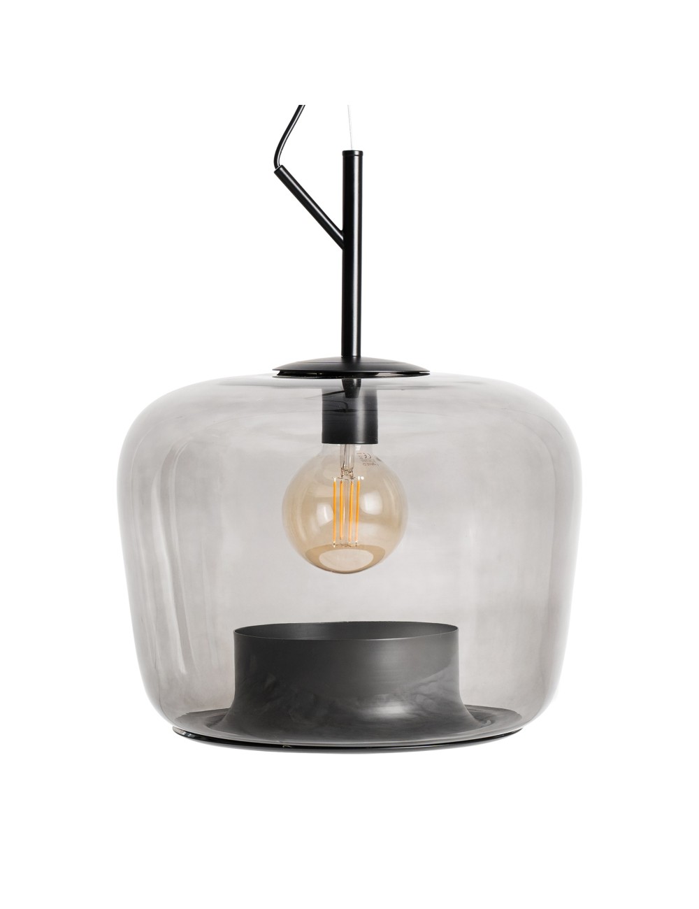 Lámpara de colgar Helen de estilo contemporáneo fabricado en cristal en color gris con acabado traslúcido combinado con hierro en color negro.