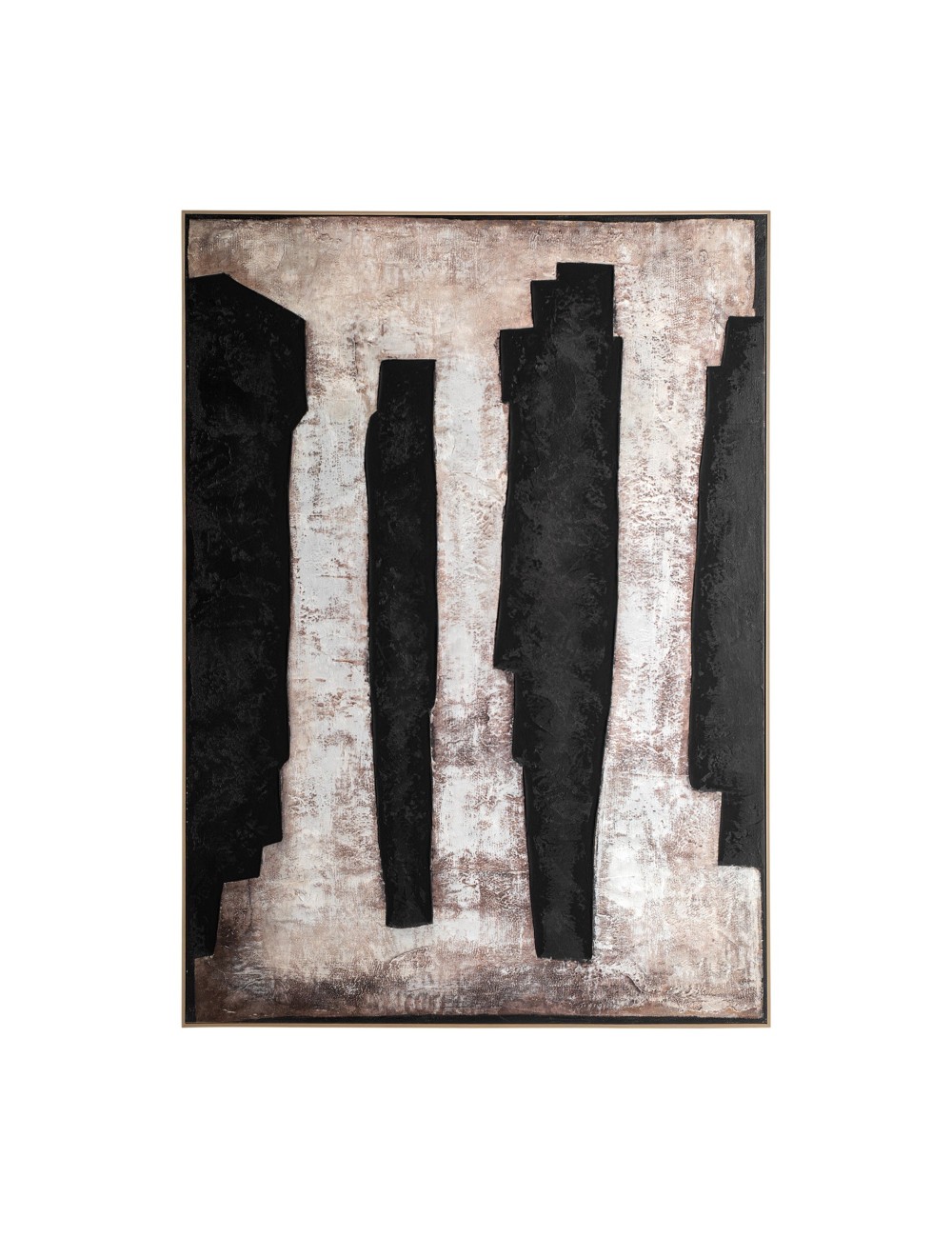Cuadro Kurt de estilo contemporáneo fabricado en lienzo en color tonos neutros combinado con madera de pino en color marrón. | Cuadro Enzo de estilo contemporáneo fabricado en lienzo en color tonos en marrón con acabado artesanal combinado con madera de pino en color negro. |