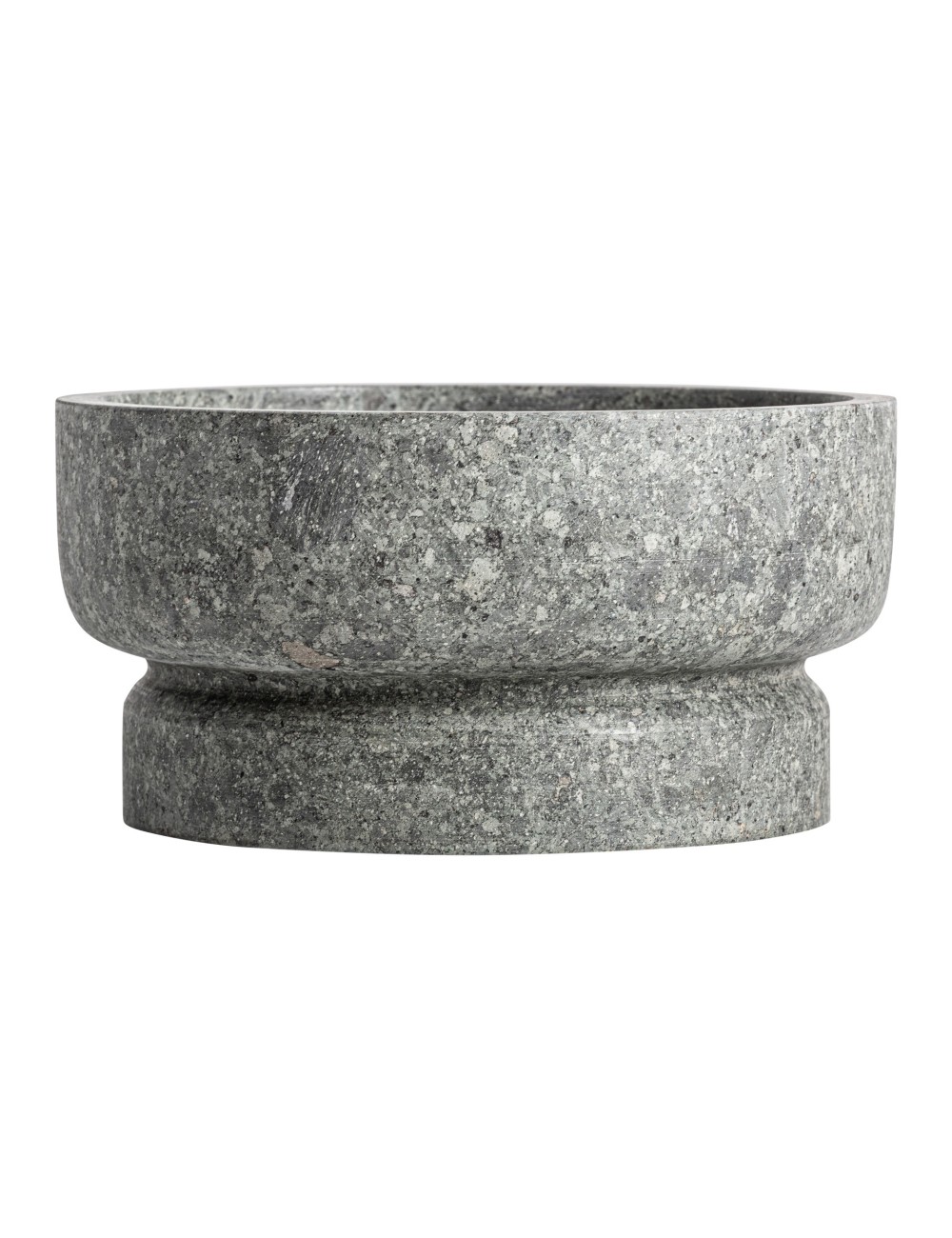 Centro de mesa Basu de estilo contemporáneo fabricado en mármol en color gris con acabado rugoso.