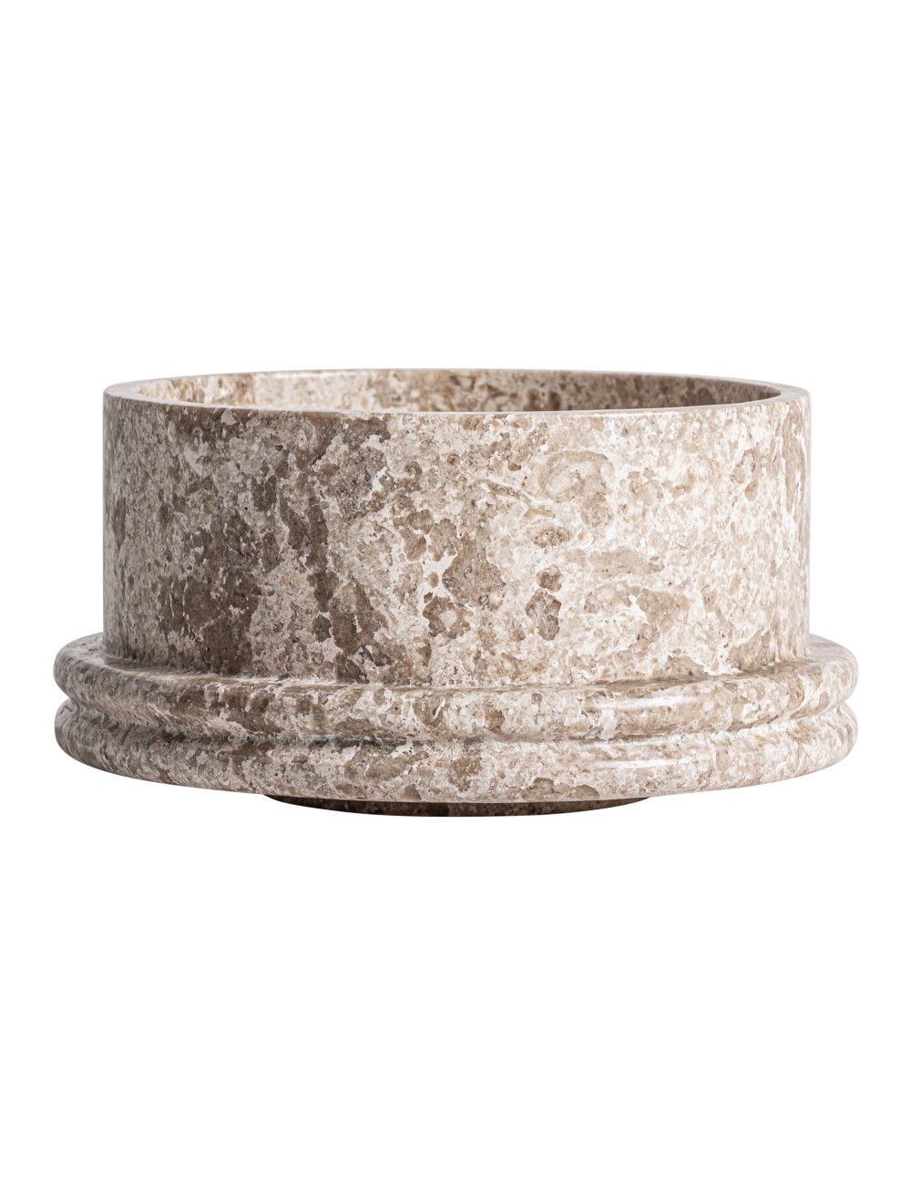 Centro de mesa Trava de estilo contemporáneo fabricado en mármol en color beige con acabado mate.