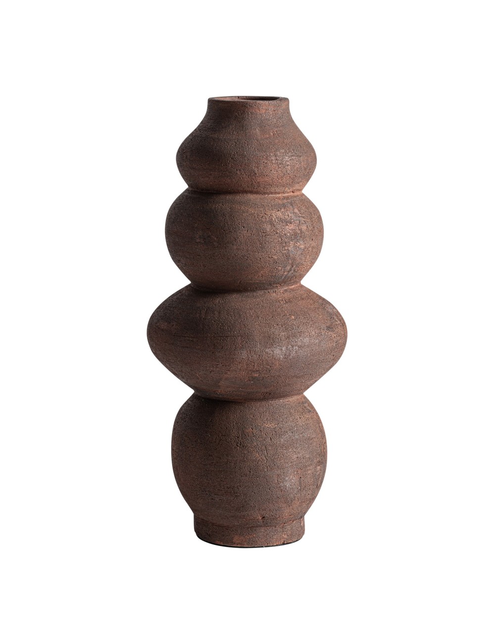 Jarrón Okar de estilo contemporáneo fabricado en terracota en color terracota con acabado mate. | Tibor Bear de estilo art deco fabricado en cerámica en color tonos de azul. | Jarrón phelles en color crema envejecido de estilo étnico. Fabricado en terracota combinado con madera. Producto desmontable. | Jarrón nohae de estilo art deco fabricado en cerámica en color negro. |