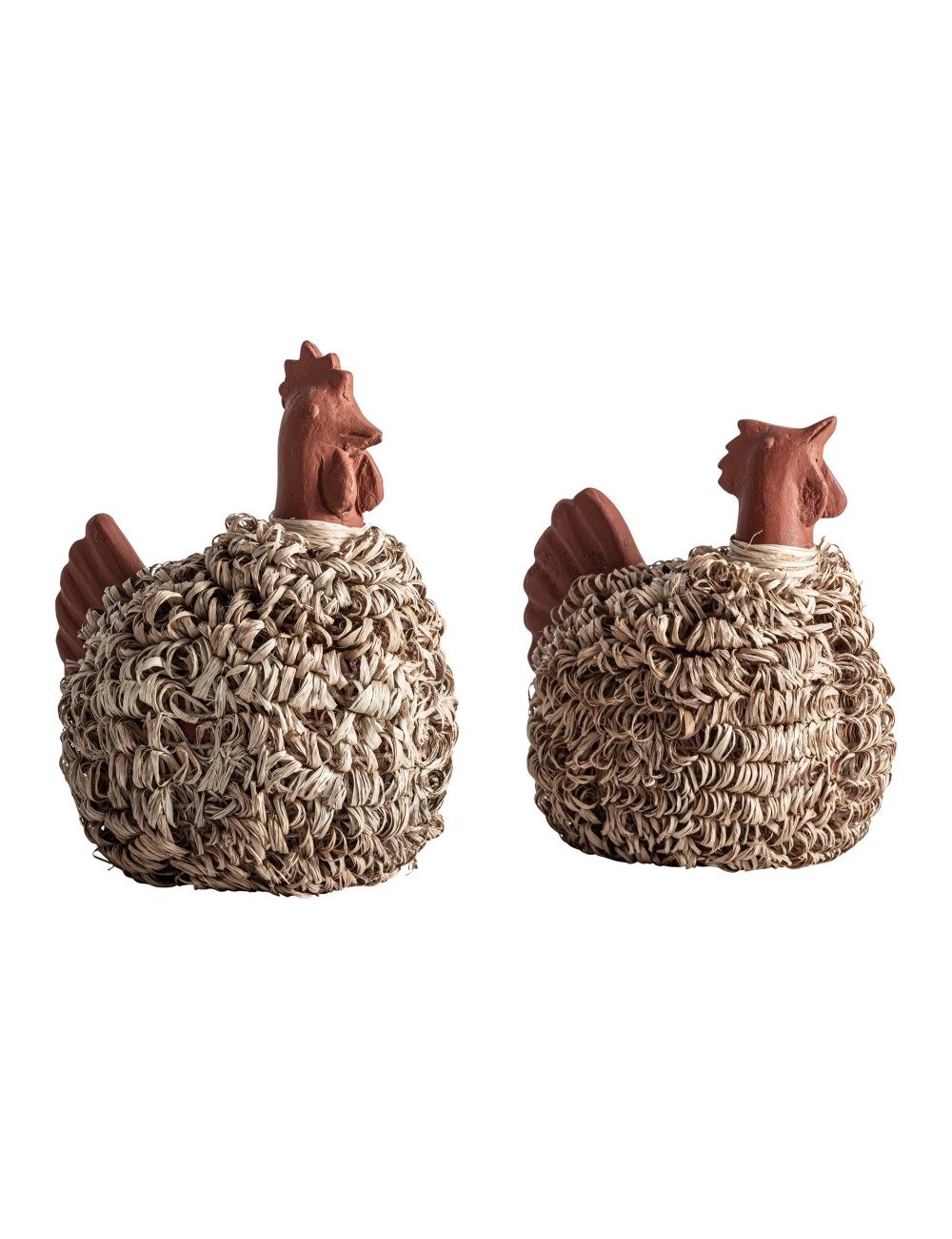 Figura animal j 2 fabricado en terracota en color terracota combinado con rafia en color beige.