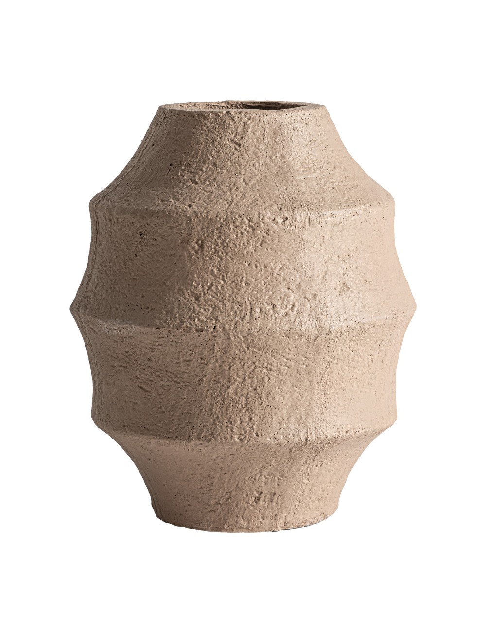 Jarrón Melman de estilo contemporáneo fabricado en cemento en color marrón claro combinado con fibra de vidrio. | Jarrón Raynal de estilo étnico fabricado en madera suar en color marrón con acabado envejecido. | Jarrón joelhe de estilo contemporáneo fabricado en mármol en color marrón claro. | Tinaja Adrien de estilo contemporáneo fabricado en terracota en color gris en color negro. |