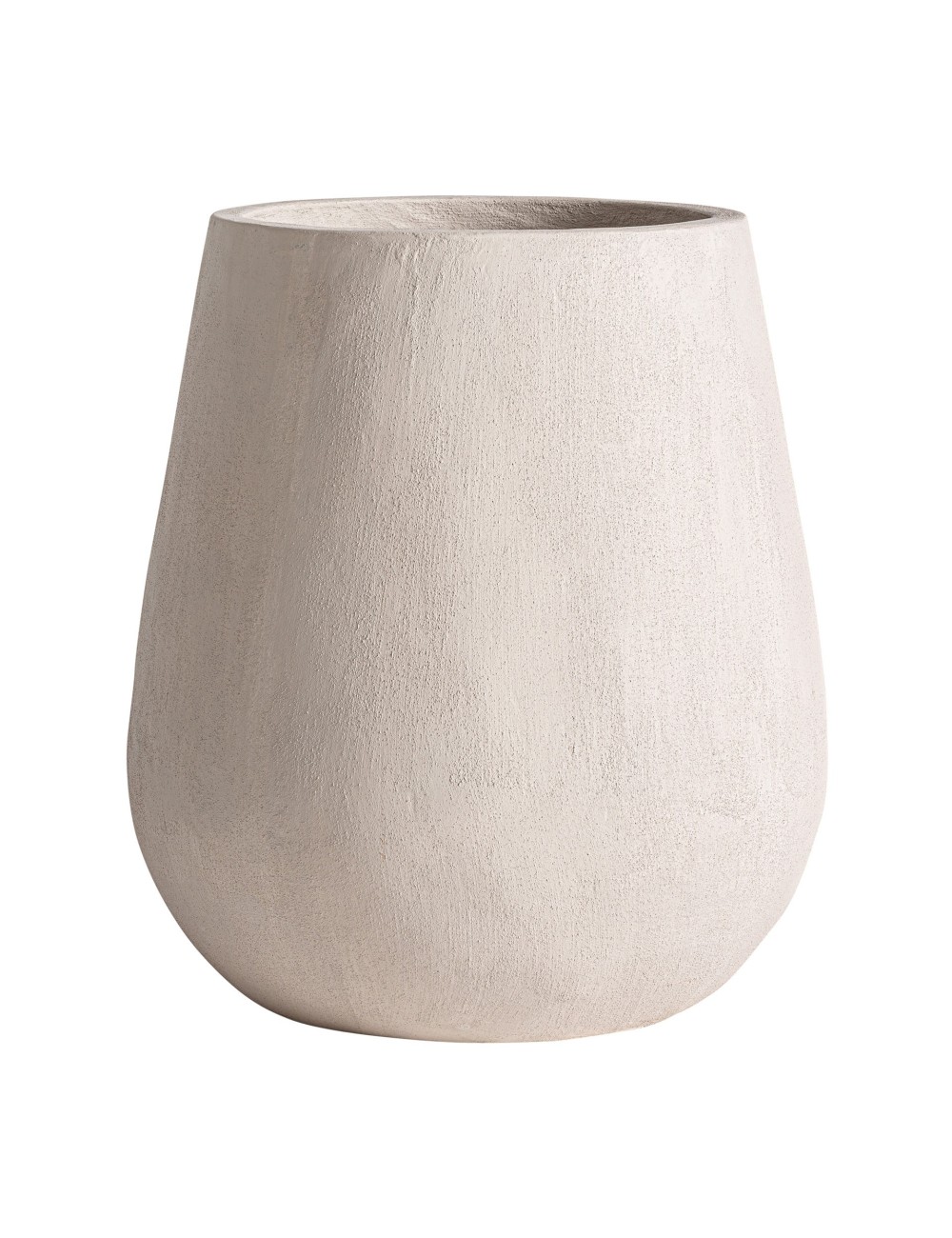 Tinaja Stevie de estilo contemporáneo fabricado en cemento en color beige combinado con fibra de vidrio.