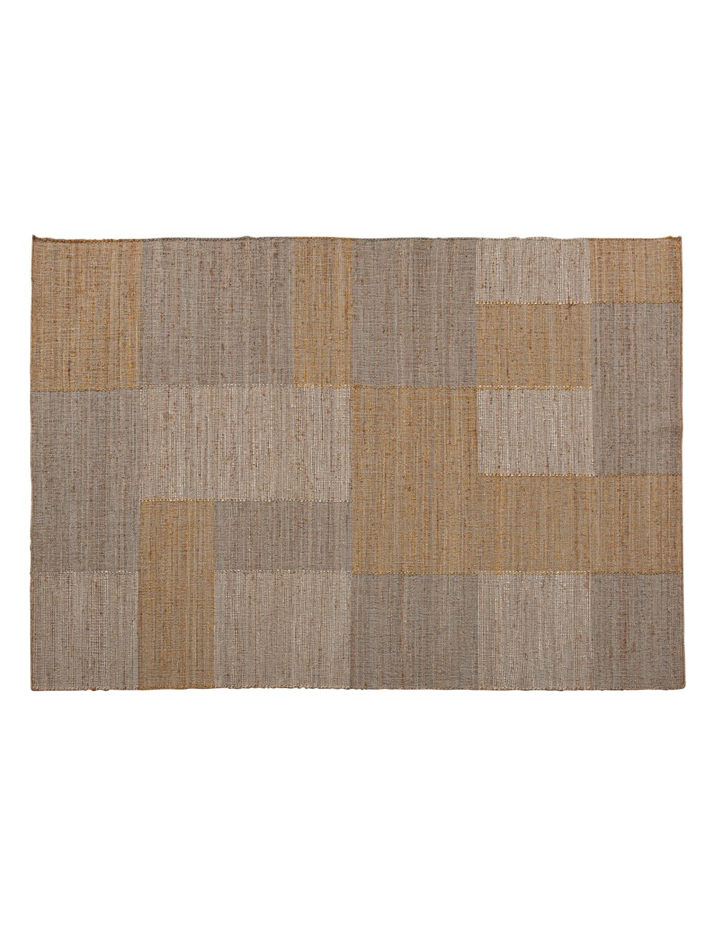 Alfombra Takara de estilo clásico fabricado en yute en color gris combinado con algodón en color ocre en color beige.
