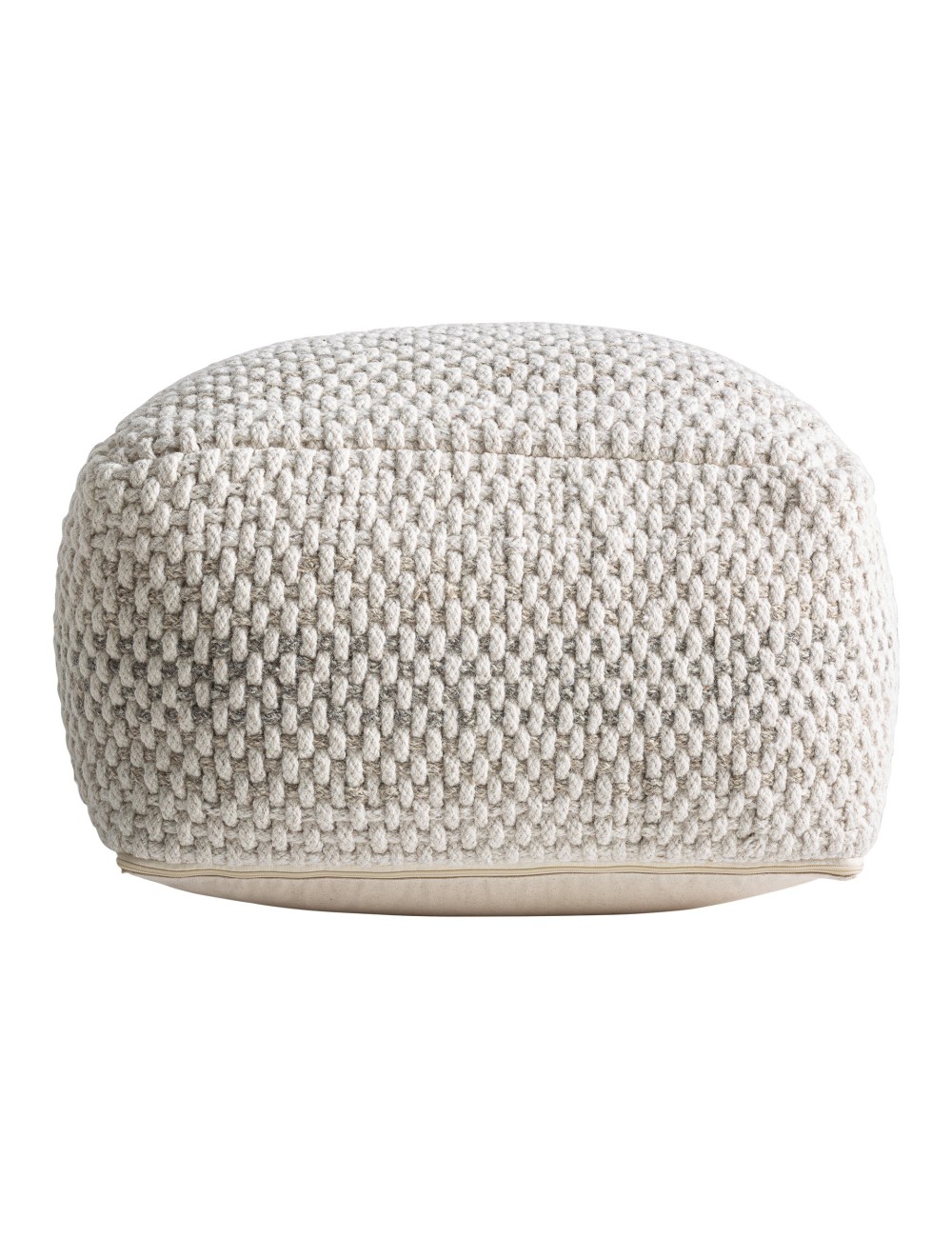 Puff Koto de estilo clásico fabricado en lana en color blanco roto combinado con espuma en color gris. Producto desenfundable.
