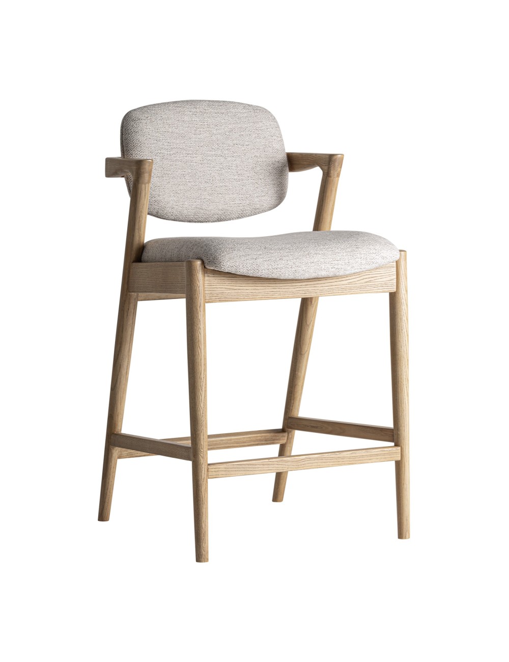 Taburete Namur de estilo contemporáneo fabricado en madera de fresno en color marrón combinado con poliéster en color marrón. | Taburete Jacquard de estilo contemporáneo fabricado en madera de olmo en color marrón claro combinado con poliéster en color beige. | Taburete Jacquard de estilo contemporáneo fabricado en madera roble en color negro combinado con poliéster en color gris. |