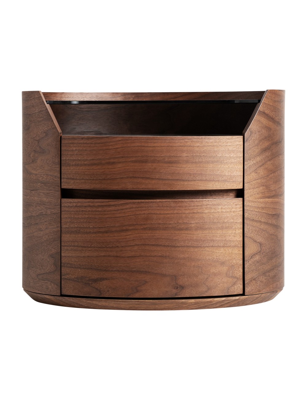 Mesita de noche Lecco de estilo contemporáneo fabricado en madera contrachapada en color marrón combinado con cristal en color transparente y cerámica en color blanco. | Mesita de noche kandern, en color marrón claro, de estilo art deco. Fabricado en madera contrachapada, combinado con polipiel. | Mesita de noche liestal, en color negra, de estilo art deco. Fabricado en madera dm, combinado con chapa de roble. | Mesita de noche tully, en color marrón/oro, de estilo art deco. Fabricado en madera de mango, combinado con latón. |