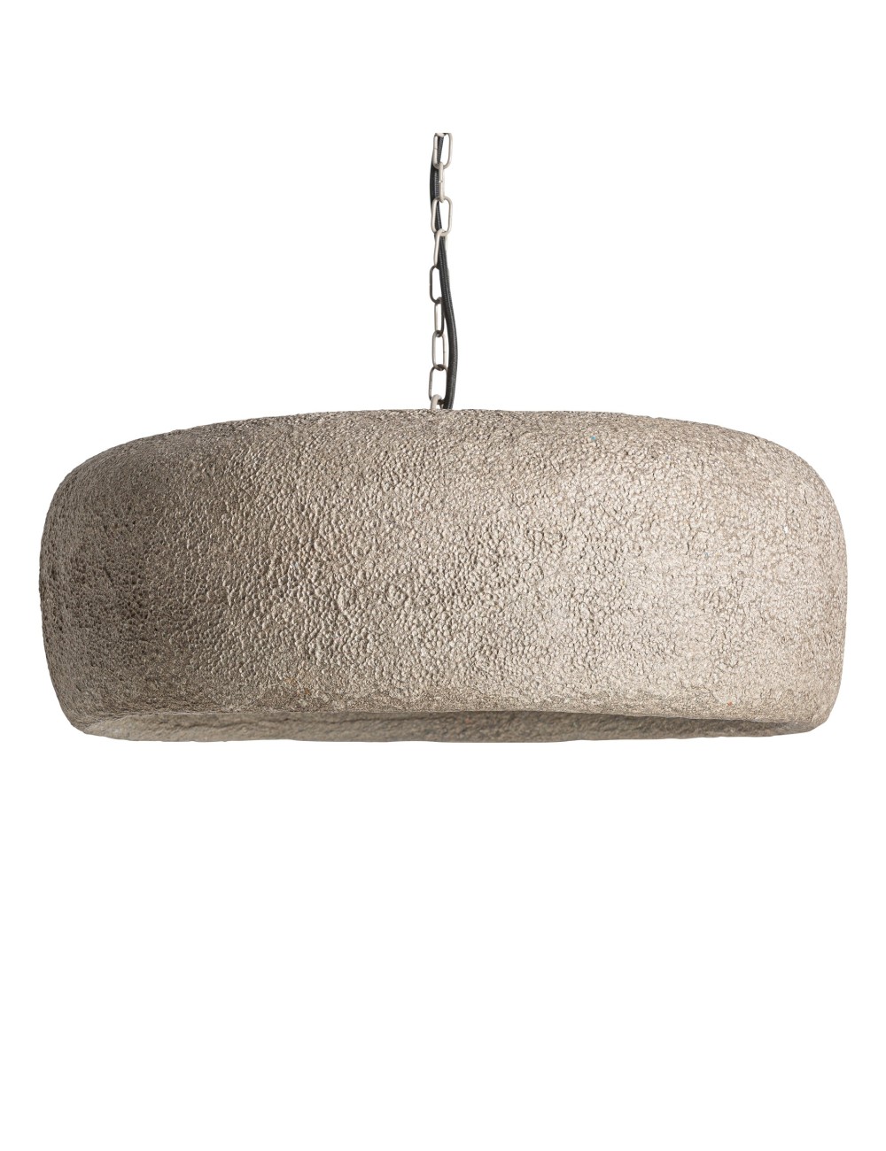 Lámpara de colgar Moonle de estilo contemporáneo fabricado en papel maché en color gris combinado con hierro en color negro.