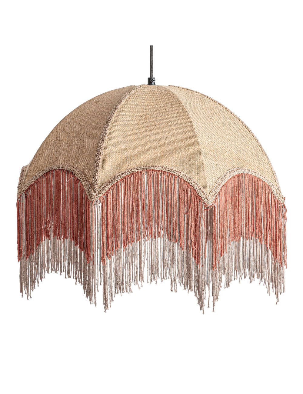 Lámpara de colgar Sakhsa de estilo provenzal fabricado en yute en color beige combinado con acrílico en color naranja y hierro en color marrón.
