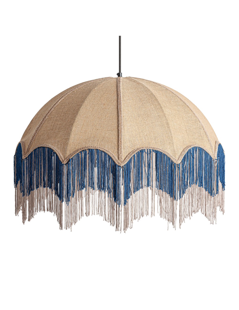 Lámpara de colgar Lashem de estilo provenzal fabricado en yute en color beige combinado con acrílico en color azul y hierro en color marrón.