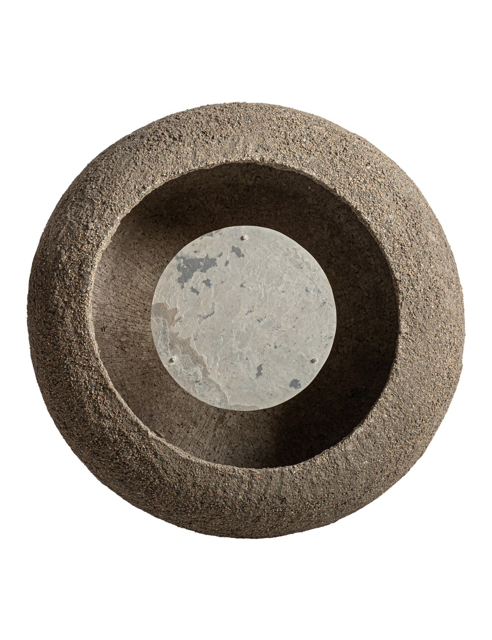 Aplique Wisha de estilo contemporáneo fabricado en cemento en color gris combinado con papel maché en color gris y piedra en color beige. | Lámpara de colgar jacquard de estilo contemporáneo. Fabricado en madera de mango en color marrón. |