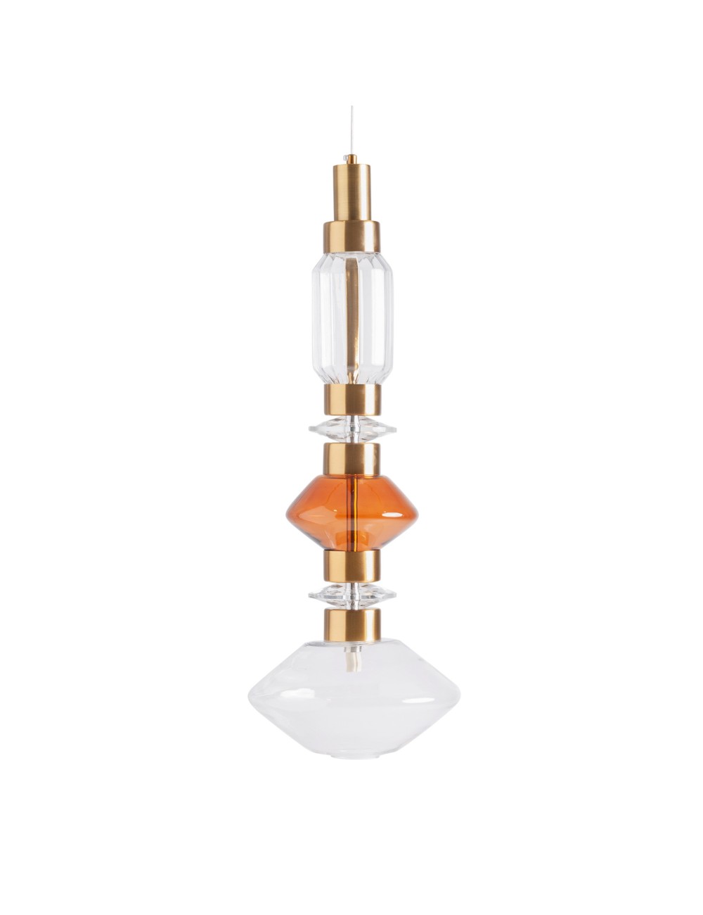 Lámpara de colgar Anna de estilo art deco fabricado en cristal en color tonos neutros con acabado ahumado combinado con acero en color cobre.