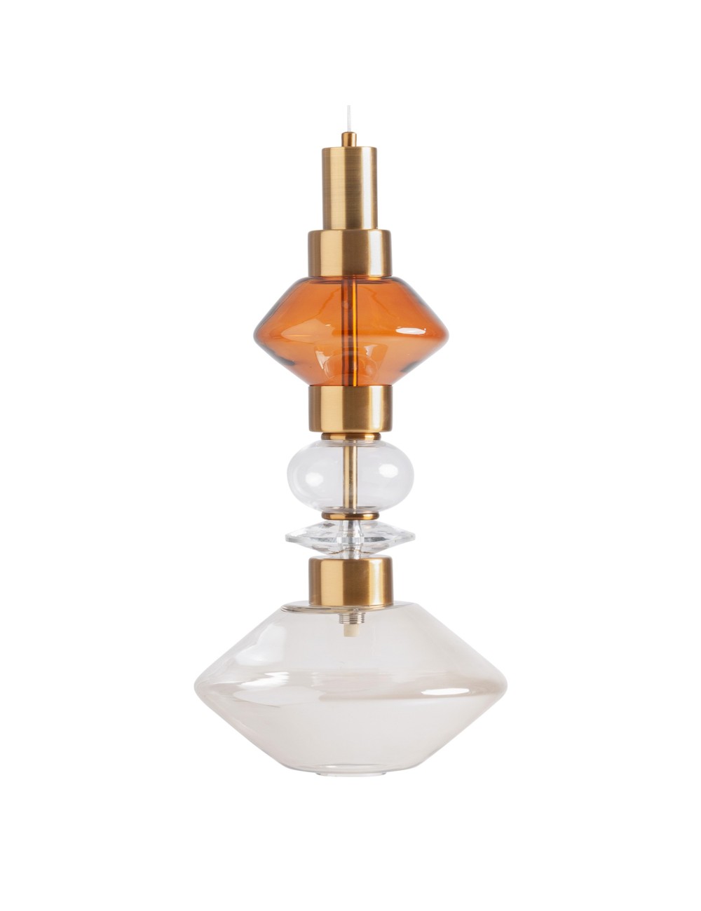 Lámpara de colgar Anna de estilo art deco fabricado en cristal en color tonos neutros con acabado ahumado combinado con acero en color cobre. Producto desmontable. | Lámpara de colgar redonda micah de estilo art deco, fabricado en vidrio en color multicolor, combinado con acero en color blanco. | Lámpara de colgar redonda oplev de estilo contemporáneo, fabricado en madera de mango en color marrón. | Lámpara de colgar nyland de estilo rústico fabricado en resina en color crema con acabado rugoso combinado con yute en color arena. |