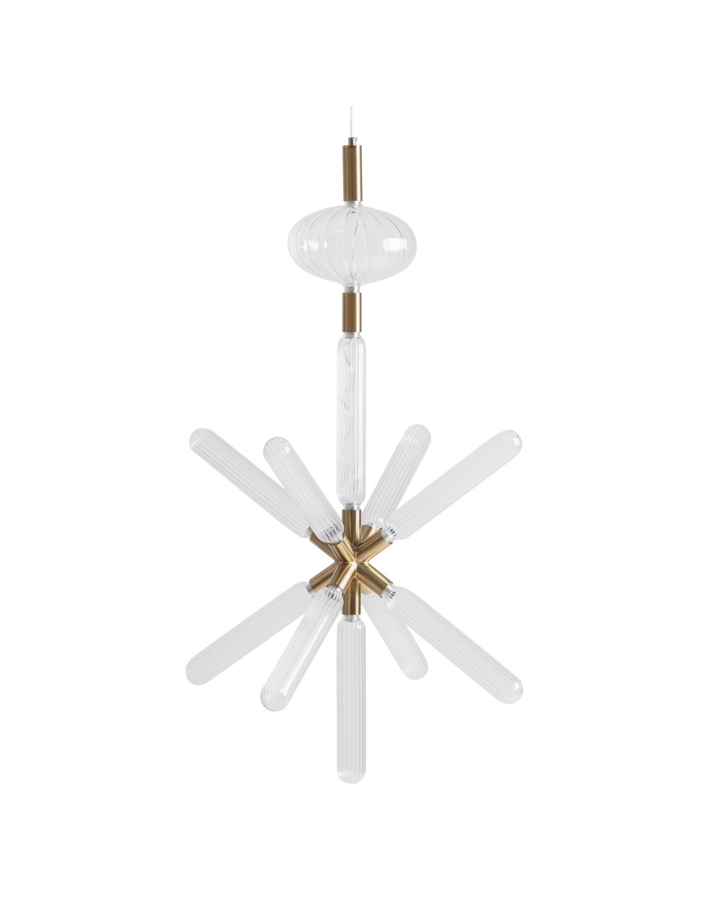 Lámpara de colgar Cataline de estilo art deco fabricado en cristal en color transparente combinado con acero en color oro. Producto desmontable.