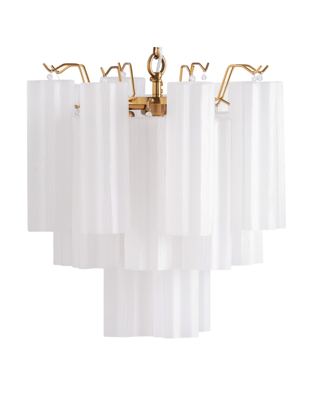 Lámpara de colgar Palesha de estilo art deco fabricado en cristal en color blanco combinado con acero en color bronce. Producto desmontable.