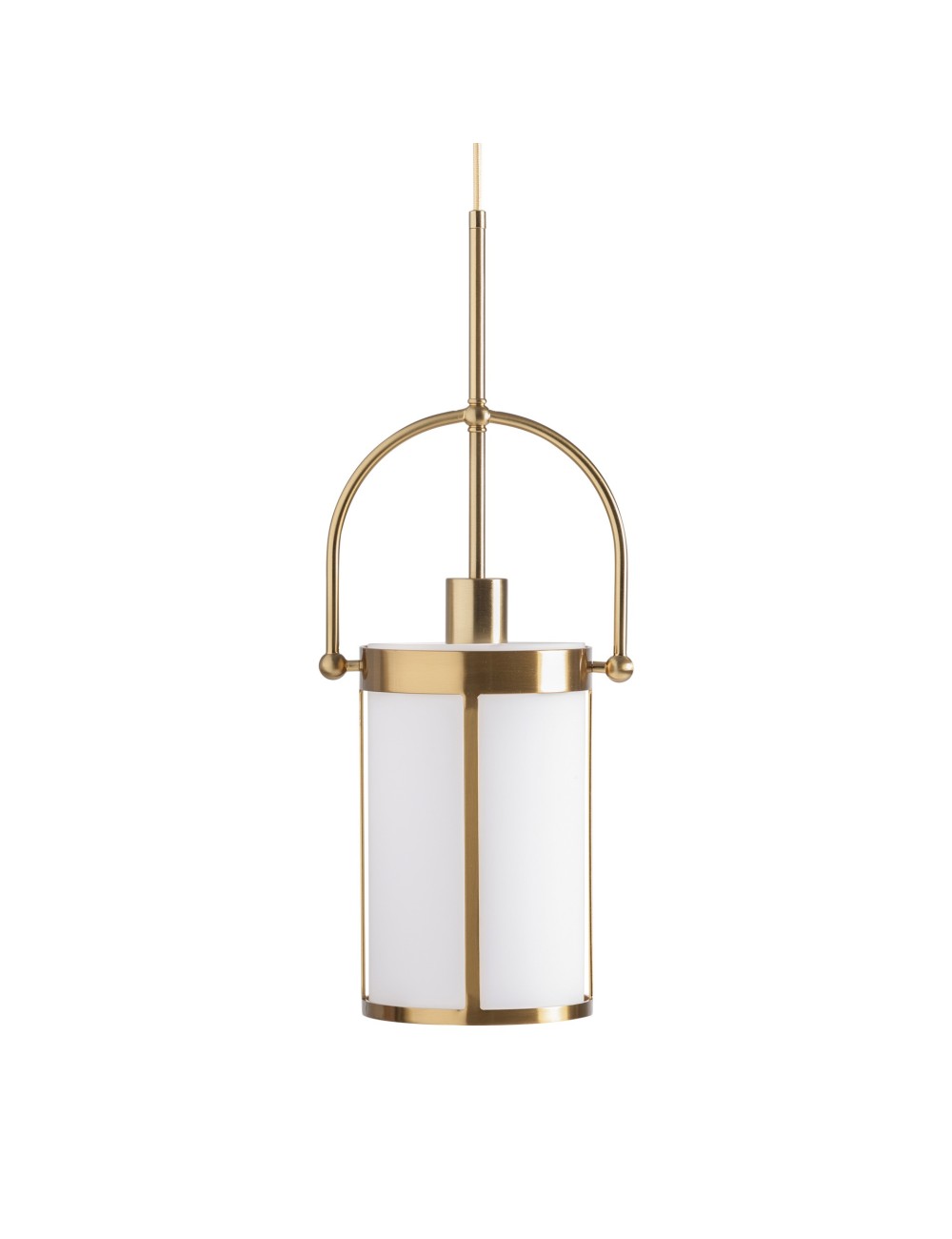 Lámpara de colgar Sahune de estilo art deco fabricado en cristal en color marfil combinado con acero en color oro con acabado viejo. Producto desmontable.