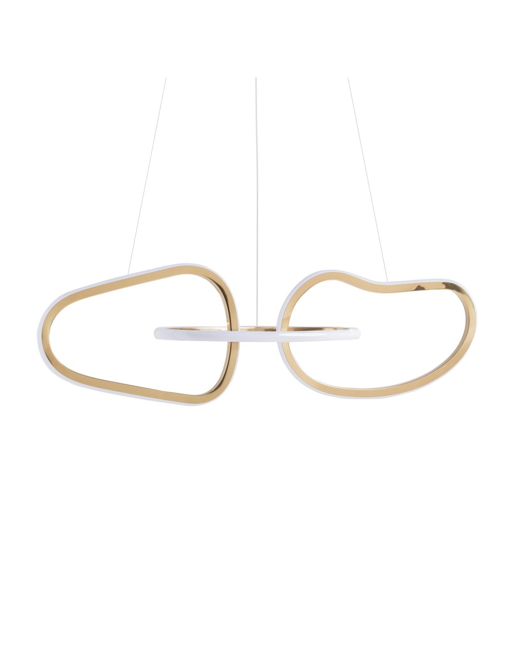 Lámpara de colgar Kaleshe de estilo art deco fabricado en acero inoxidable en color dorado combinado con cristal en color blanco.