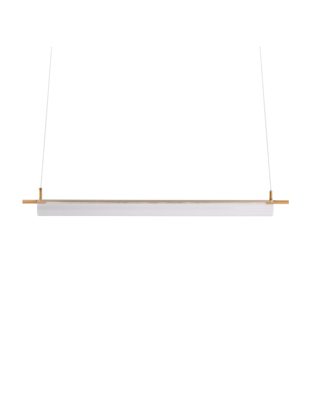 Lámpara de colgar Marlena de estilo art deco fabricado en cristal en color transparente con acabado ahumado combinado con aluminio en color bronce.