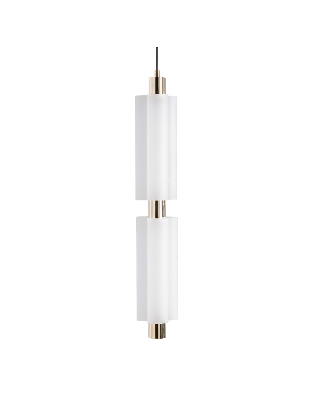 Lámpara de colgar Evalene de estilo art deco fabricado en cristal en color blanco combinado con acero en color dorado.