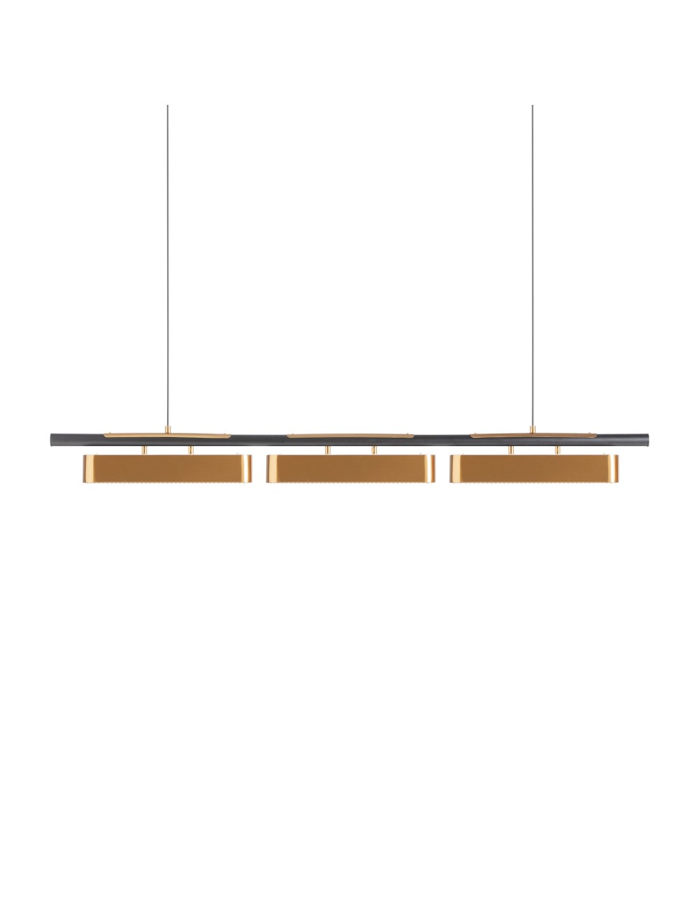 Lámpara de colgar fabricado en acero en color cobre combinado con hierro en color negro. Lámpara de colgar Nalha de estilo art deco fabricado en hierro en color oro. Lámpara de colgar Villeshe de estilo contemporáneo fabricado en cemento en color dorado combinado con papel maché en color negro y hierro en color dorado.