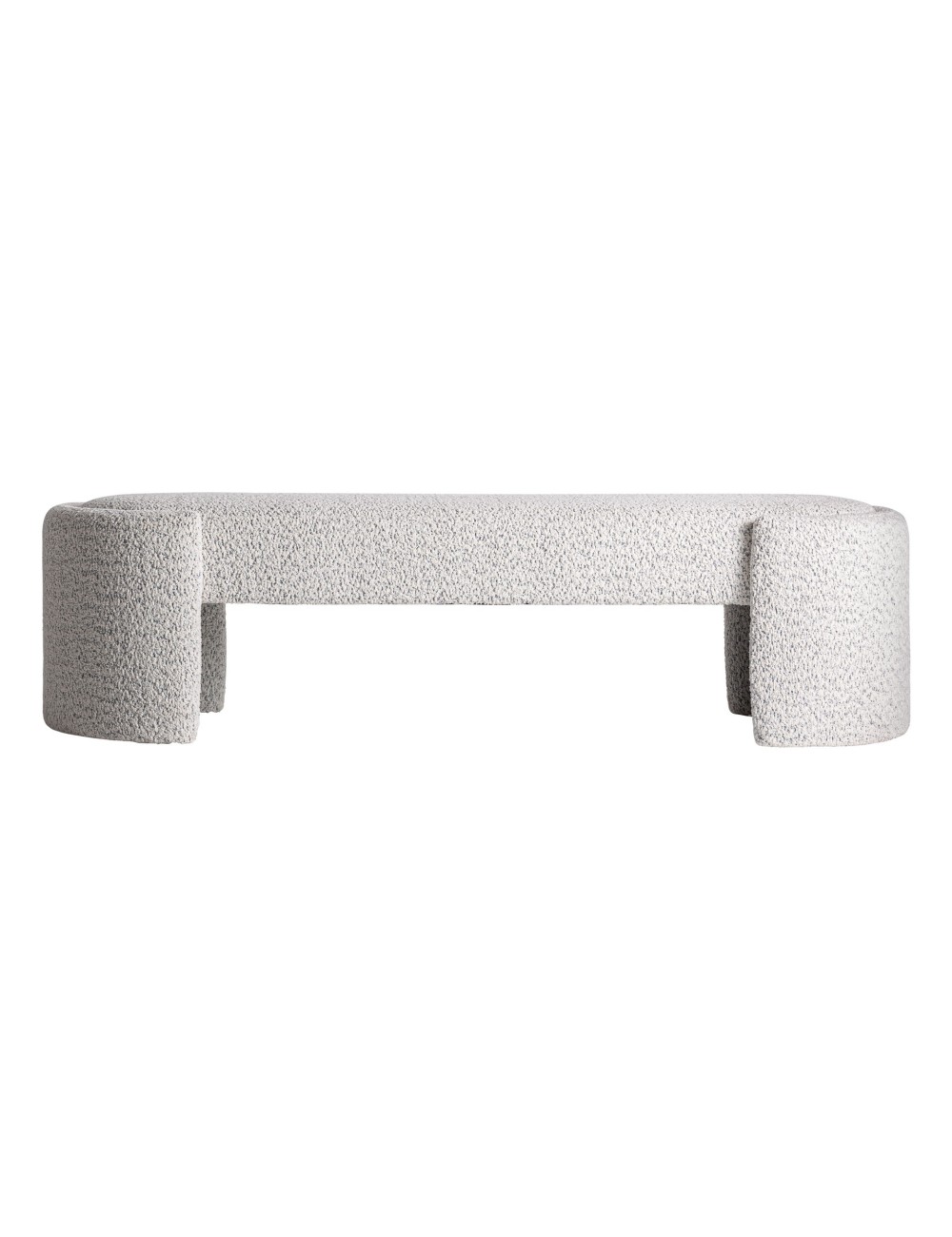 Pie de cama Cades de estilo contemporáneo fabricado en poliéster en color blanco roto con acabado jaspeado combinado con madera de fresno.