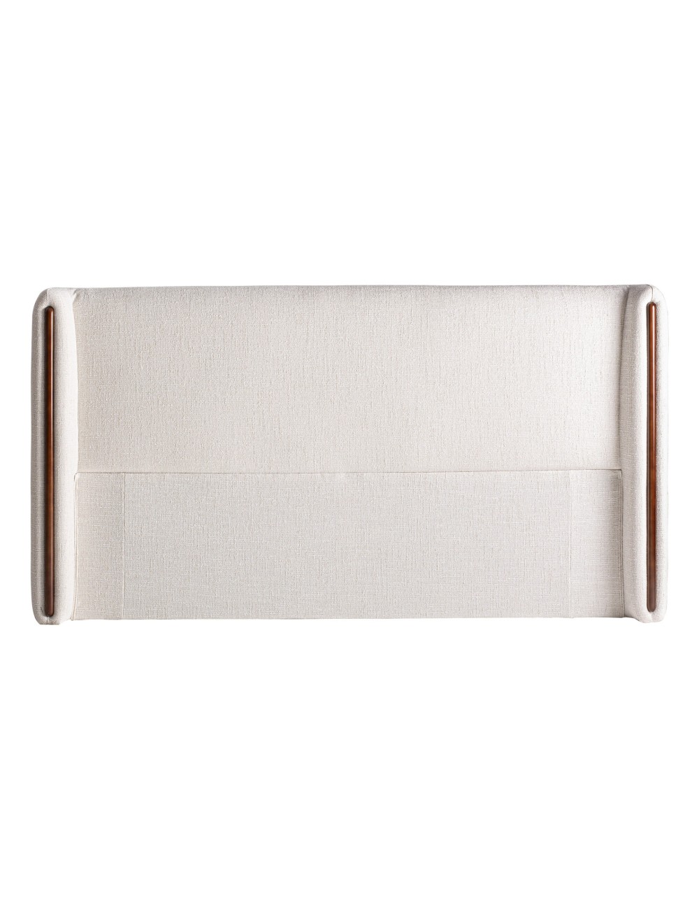 Cabezal Vilde de estilo contemporáneo fabricado en poliéster en color blanco roto combinado con madera de fresno en color marrón.