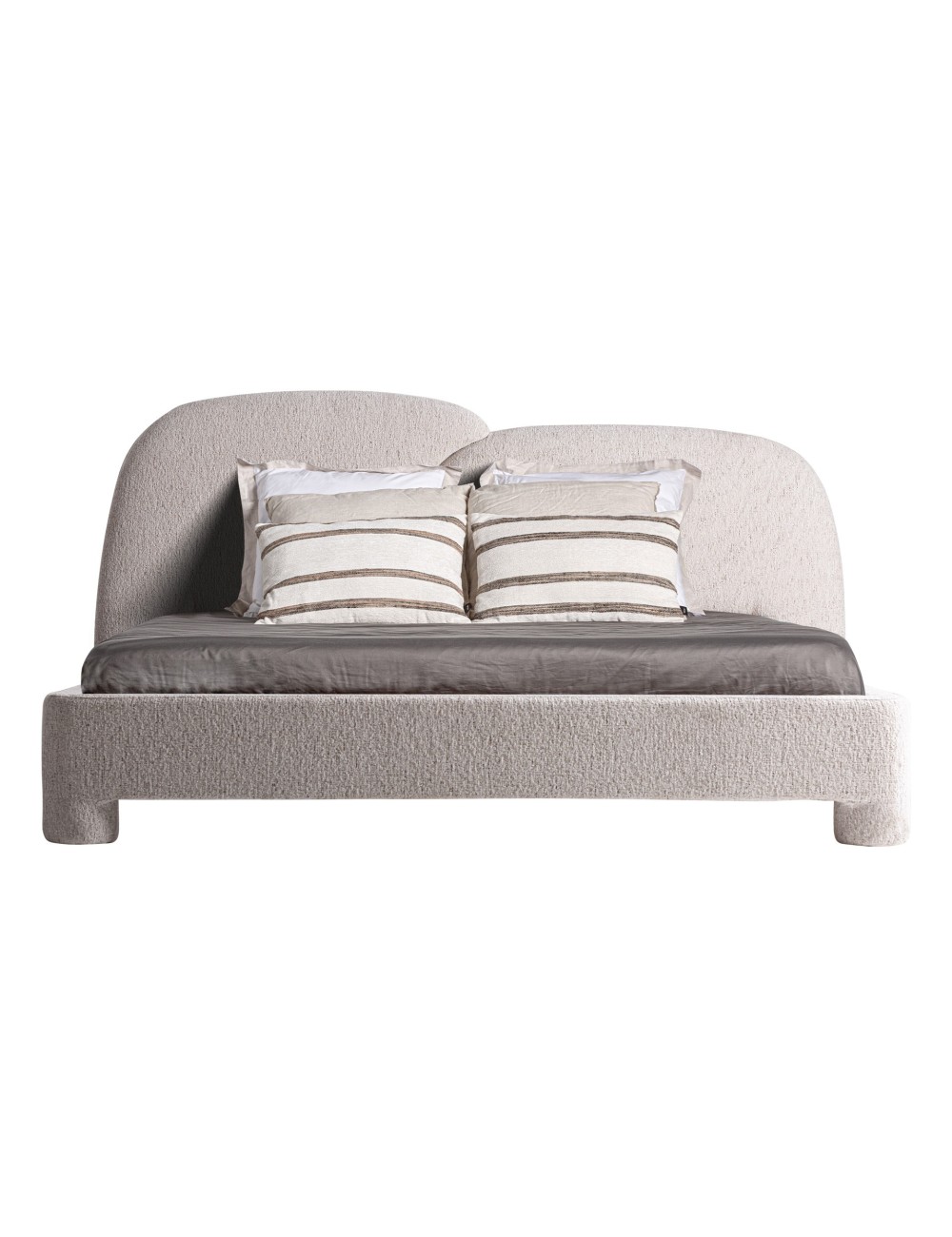 Cama Alevia de estilo contemporáneo fabricado en poliéster en color beige con acabado jaspeado combinado con madera de fresno. Producto desmontable.