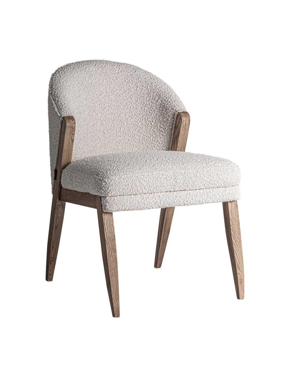 Silla Gueret de estilo contemporáneo fabricado en madera de pino en color marrón combinado con algodón bouclé en color blanco roto. | Silla kelheim, en color verde/negro, de estilo art deco. Fabricado en madera de caucho, combinado con espuma y terciopelo. | Silla trun, en color negro/oro, de estilo art deco. Fabricado en terciopelo, combinado con madera de pino. | Silla escritorio tullow, en color marrón, de estilo vintage. Fabricado en madera de mango, combinado con cuero y hierro. Producto desmontable, elevable. |