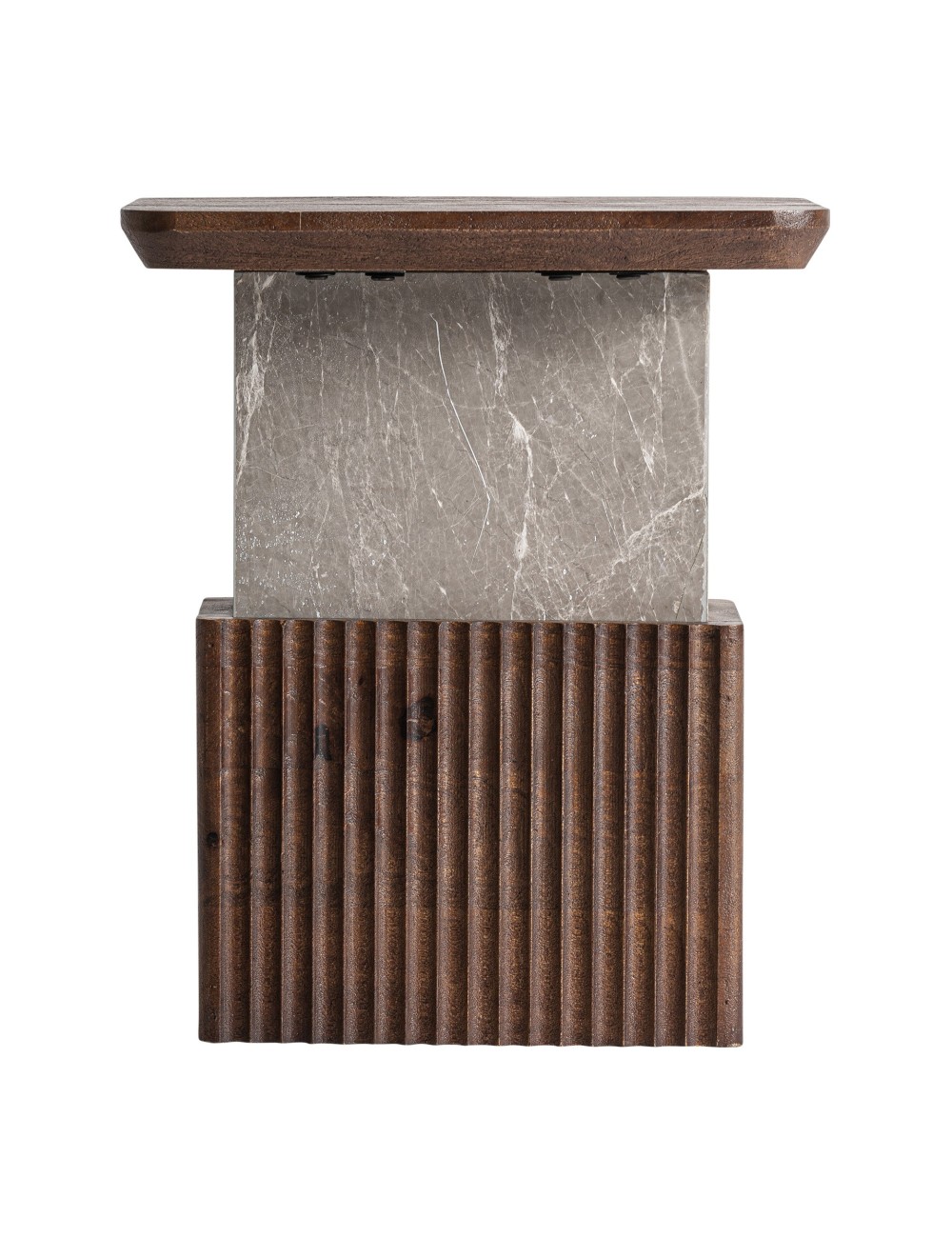Mesa auxiliar Anzex de estilo contemporáneo fabricado en madera de mango en color marrón combinado con mármol en color gris con acabado veteado. | Mesa auxiliar Verona de estilo contemporáneo, fabricado en madera dm en color marrón, combinado con mármol sintético en color beige. | Mesa de centro Gairo de estilo étnico fabricado en madera suar en color tonos en marrón con acabado tallado. | Mesa de centro Kondoa de estilo étnico fabricado en madera suar en color tonos en marrón con acabado tallado. |