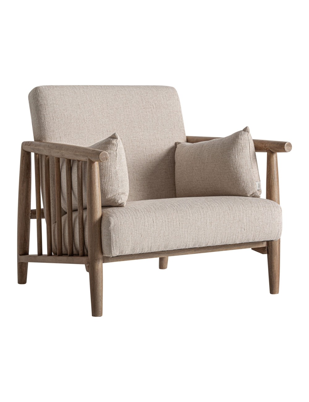 Sillón Grebin de estilo contemporáneo fabricado en madera abedul en color marrón combinado con algodón en color beige. Producto desenfundable.