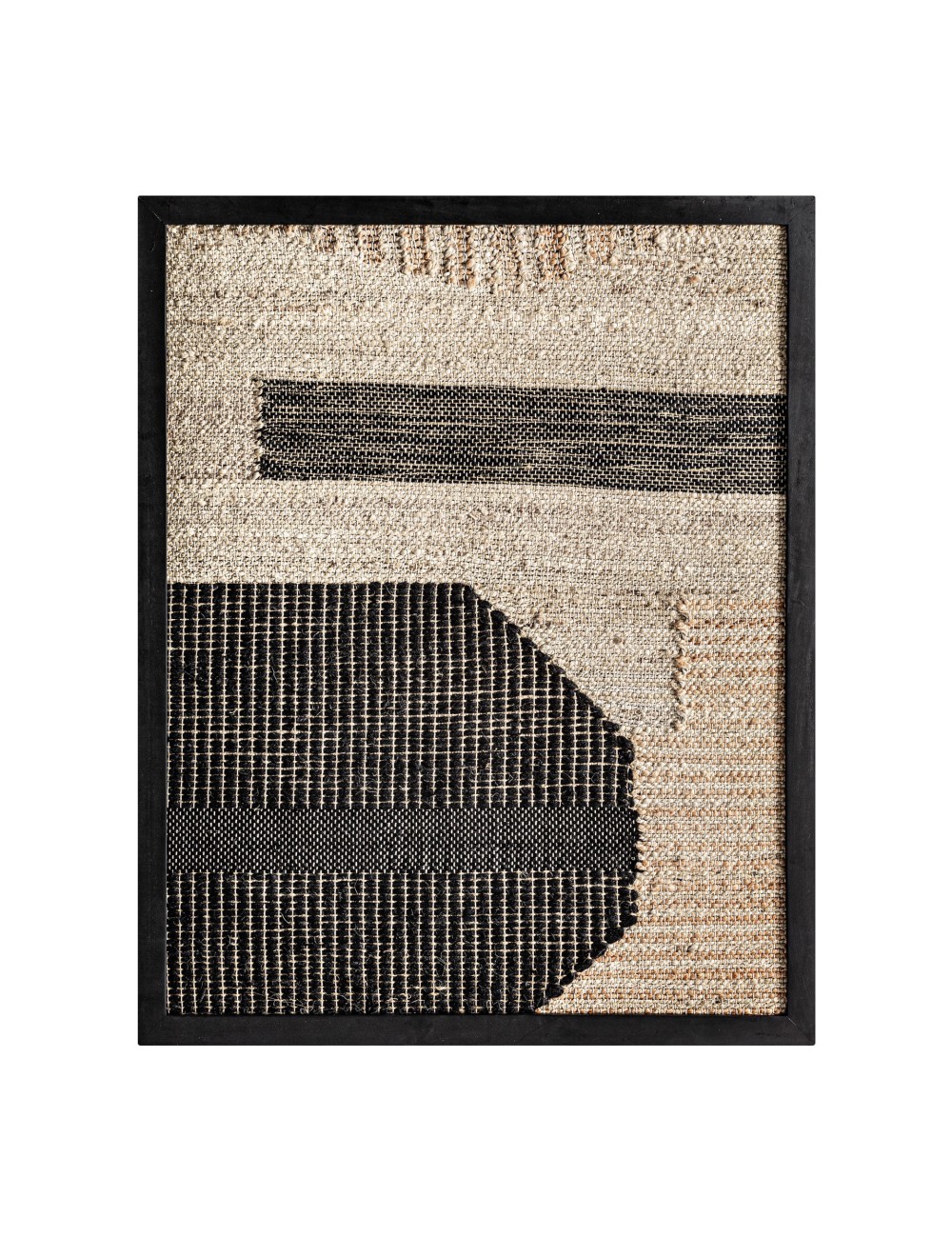 Cuadro Celso de estilo contemporáneo fabricado en madera de mango en color negro combinado con yute en color beige.