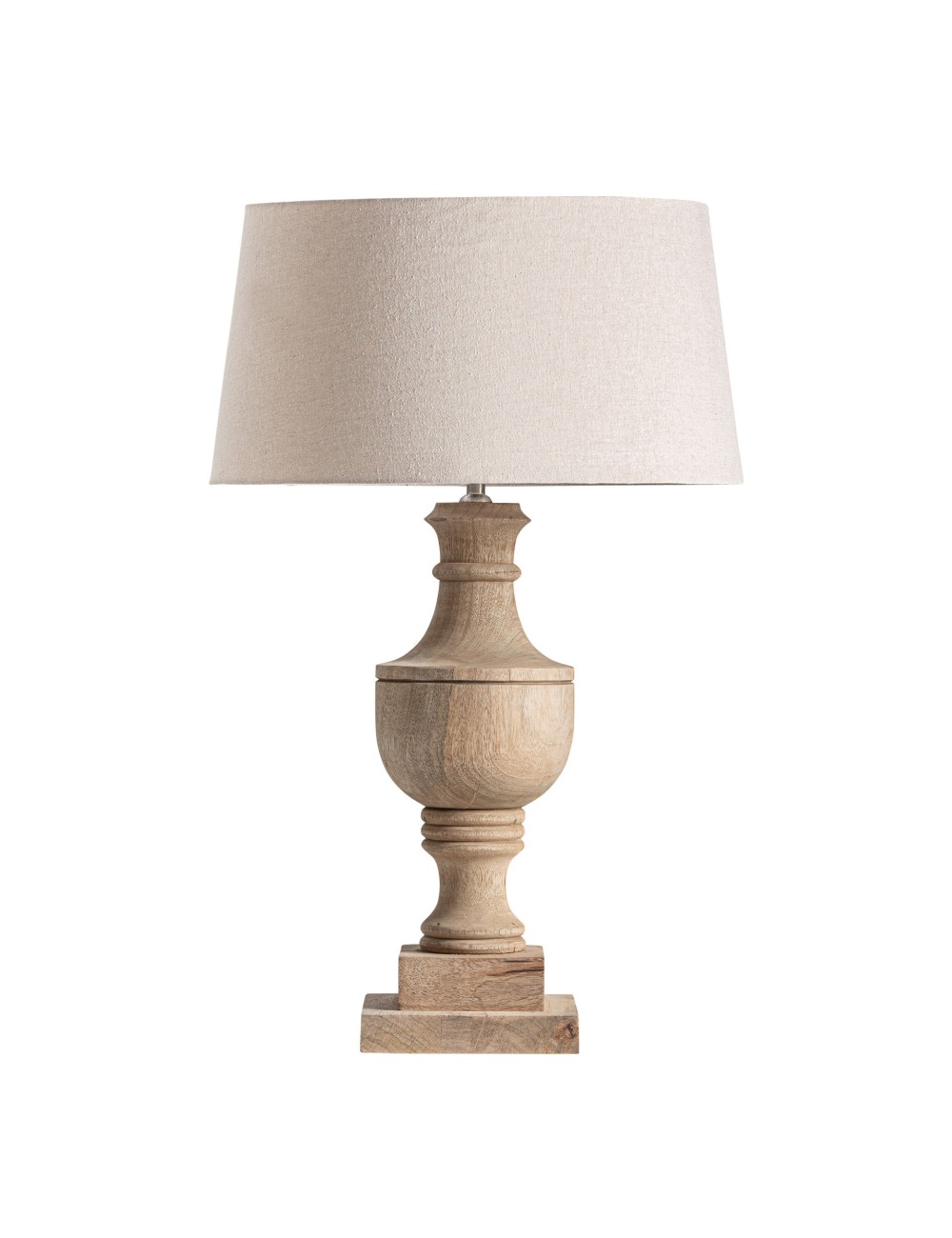 Lámpara de sobremesa Bamberg de estilo clásico fabricado en madera de mango en color marrón claro combinado con algodón en color beige. Producto desmontable. | Lámpara de sobremesa de estilo shabby chic fabricado en terracota en color blanco con acabado envejecido. Producto elevable. | Lámpara de sobremesa de estilo clásico fabricado en hierro en color transparente combinado con cristal y lino. Producto desmontable. | Lámpara de sobremesa Zalsa de estilo clásico fabricado en cerámica en color blanco combinado con hierro en color negro y lino en color negro. |