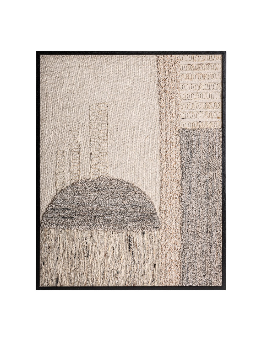 Cuadro Urzuri de estilo contemporáneo fabricado en yute en color tonos neutros combinado con algodón y madera de mango en color negro. | Cuadro Zeus de estilo boho fabricado en madera de mango en color marrón claro combinado con cáñamo en color beige y yute en color tonos neutros. | Cuadro Bavois de estilo contemporáneo fabricado en lienzo en color blanco roto combinado con madera de pino en color marrón claro en color tonos en marrón. |