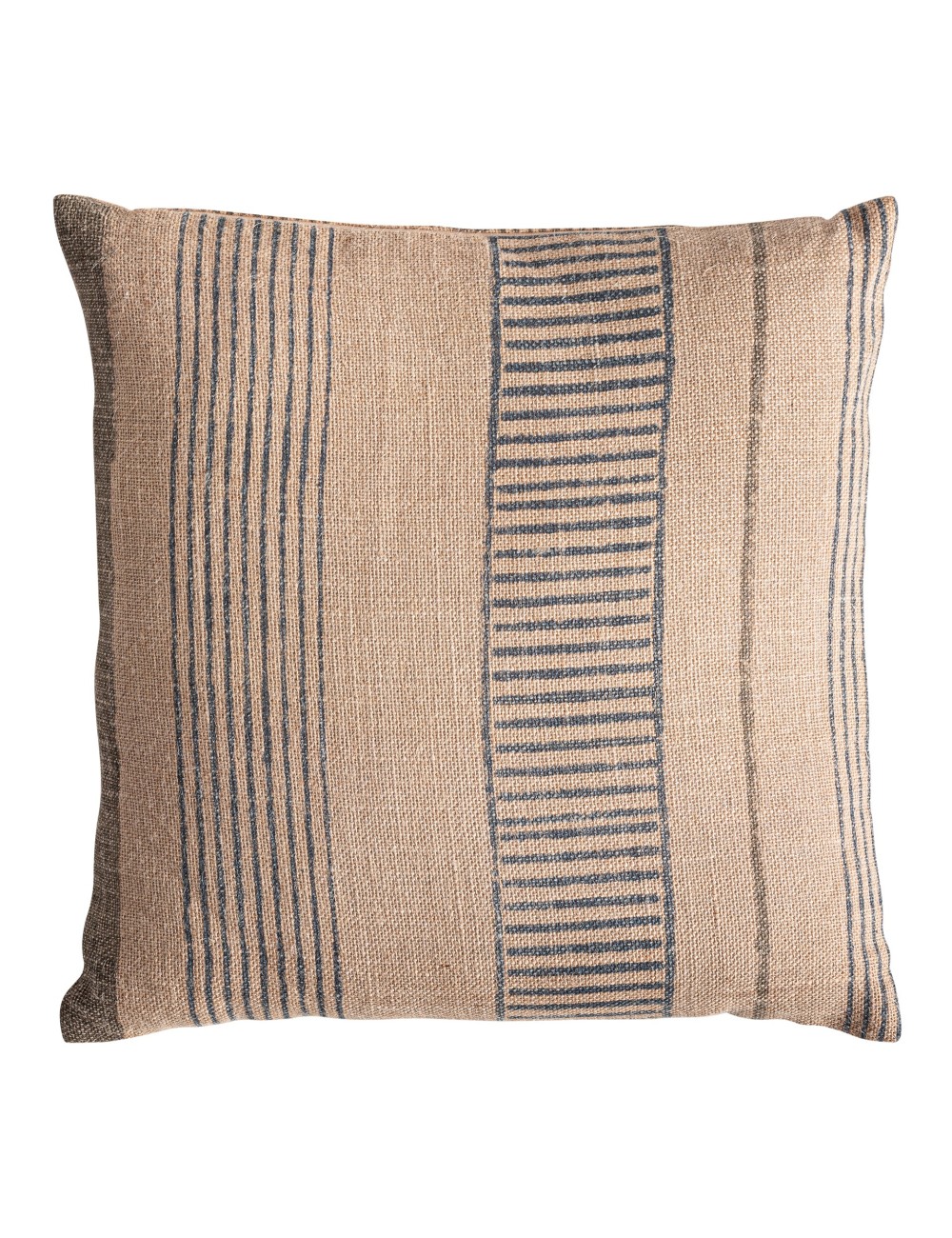 Cojín Khepri de estilo clásico fabricado en yute en color beige combinado con fibra natural en color negro. Producto desenfundable.