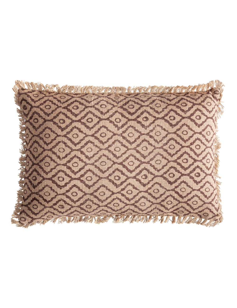 Cojín Seth de estilo clásico fabricado en yute en color beige combinado con fibra natural en color marrón. Producto desenfundable.