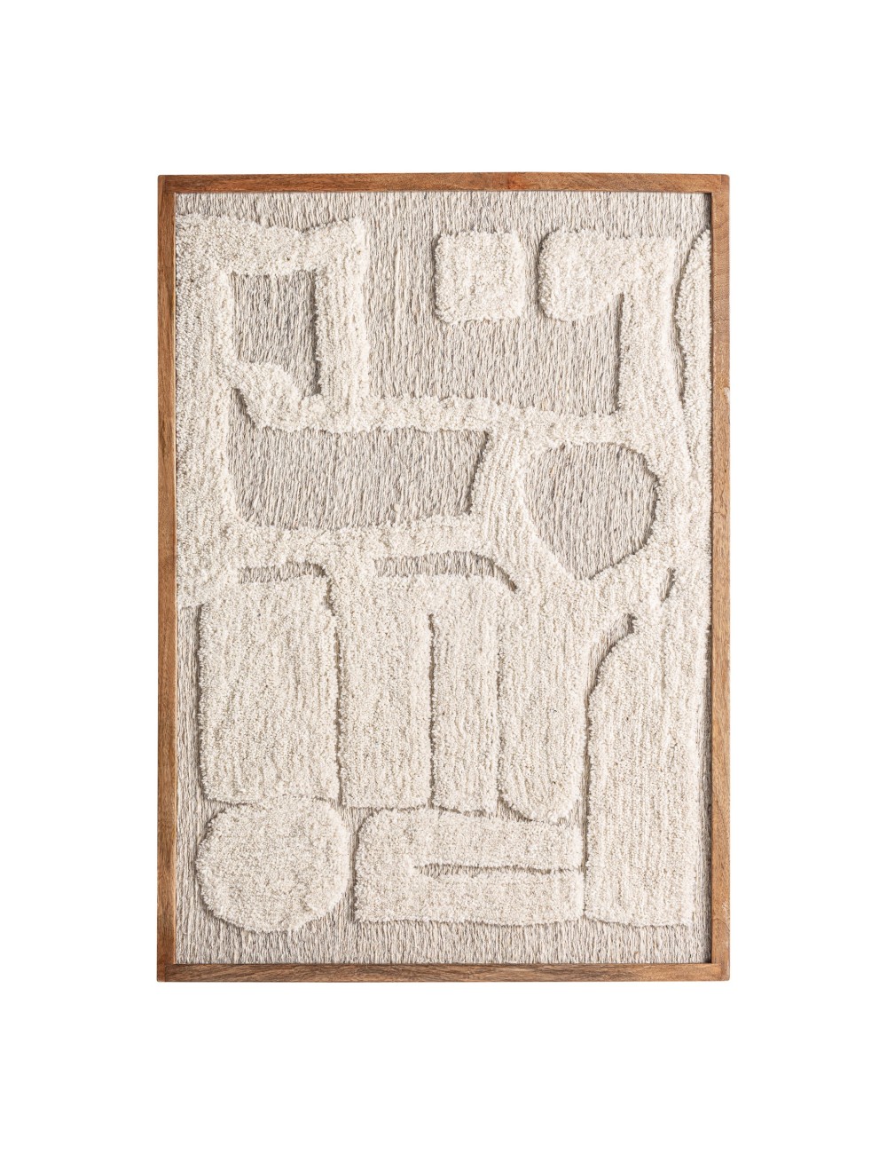 Cuadro Triton de estilo contemporáneo fabricado en algodón en color beige combinado con madera de mango en color marrón. | Cuadro ivar de estilo boho fabricado en algodón en color beige combinado con lana en color tonos en marrón y madera de mango en color marrón con acabado natural. | Cuadro Tum de estilo contemporáneo fabricado en algodón en color tonos neutros combinado con madera de mango en color marrón. | Cuadro Sobek de estilo contemporáneo fabricado en algodón en color blanco roto combinado con madera de mango en color marrón. |