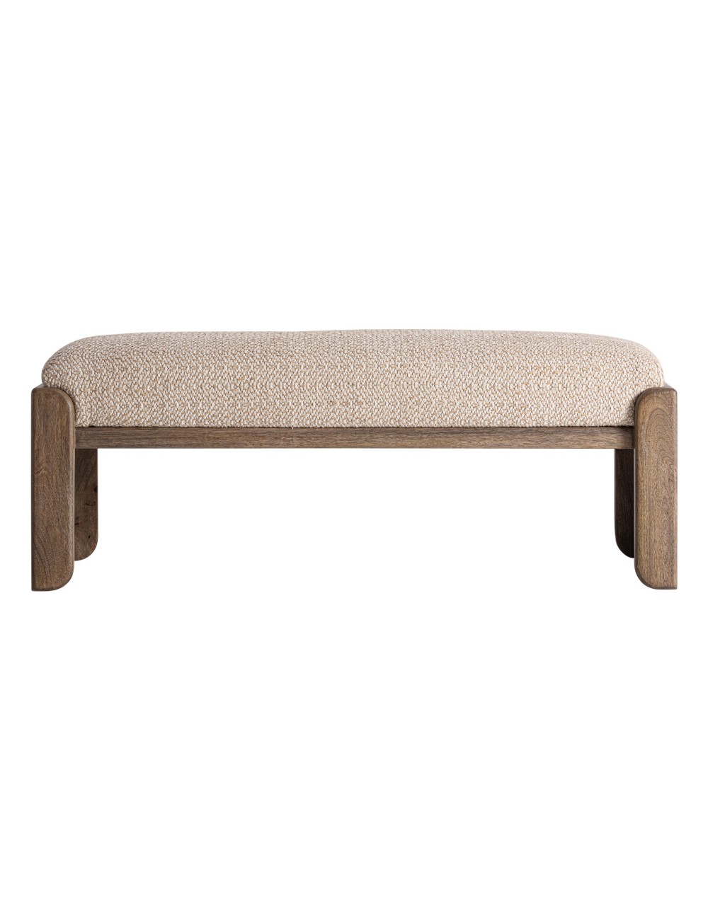 Pie de cama Liermo de estilo contemporáneo fabricado en yute en color beige combinado con madera de mango en color marrón.