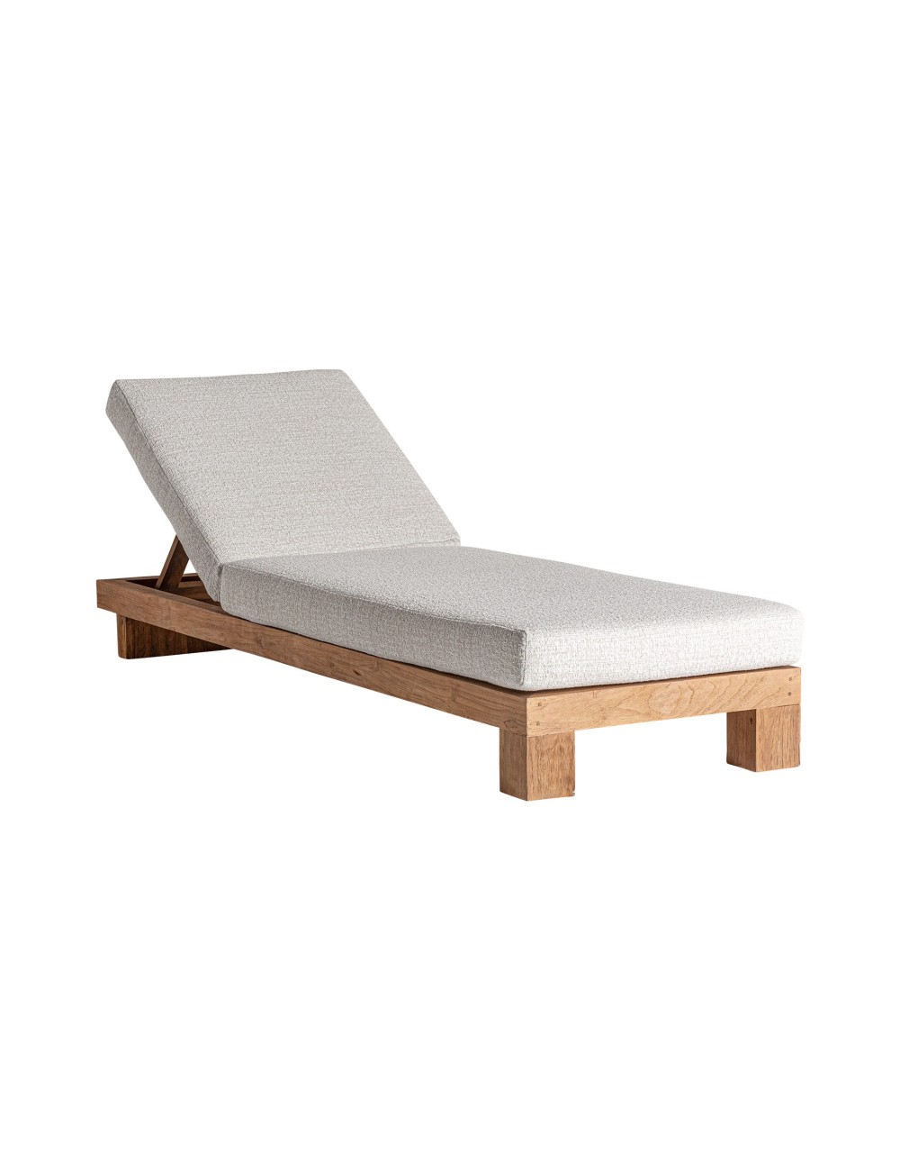 Tumbona Testa de estilo colonial fabricado en madera de teka en color marrón combinado con polipropileno en color blanco roto.