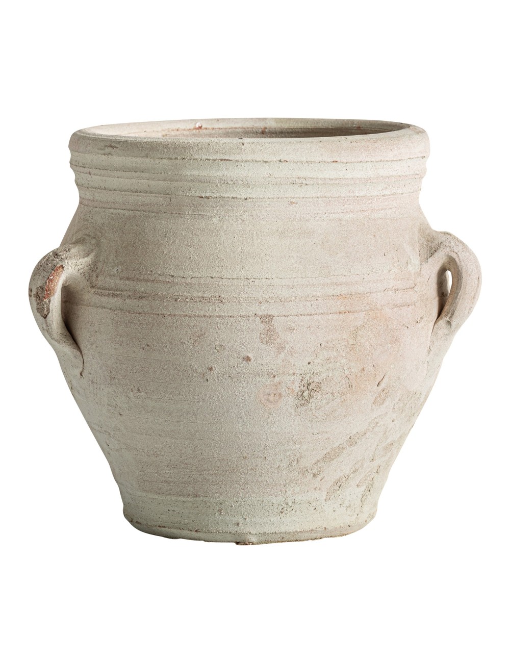 Ánfora Kowalski de estilo clásico fabricado en arcilla en color blanco roto con acabado envejecido.