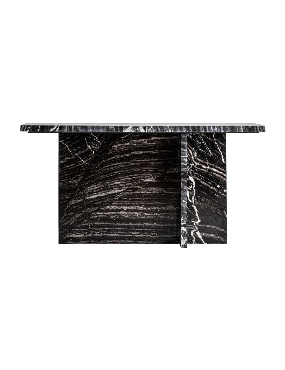 Consola Khat de estilo contemporáneo fabricado en mármol en color negro. Producto desmontable. | Consola lakato, en color marrón envejecido, de estilo étnico. Fabricado en madera de teka. | Consola Khat de estilo contemporáneo fabricado en mármol en color blanco roto. Producto desmontable. |